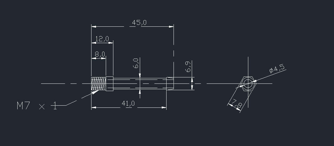Dobrý den. Poptávám soustružení 22 kusů dílů podle přiloženého výkresu. Materiál: mosaz. Pokud by byl problém zajistit 6hr tyč 8mm může být díl vyroben bez šestihranu z tyče o průměru 10mm. Pošlete mi prosím