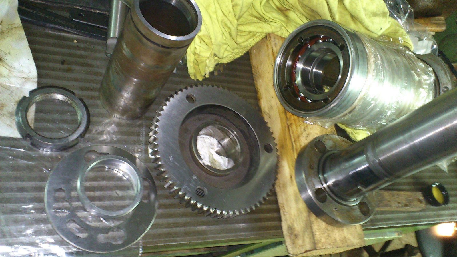 - přebroušení rozpěrných kroužků kosoúhlých ložisek + snížení vnitřního kroužku pro patřičné předepnutí