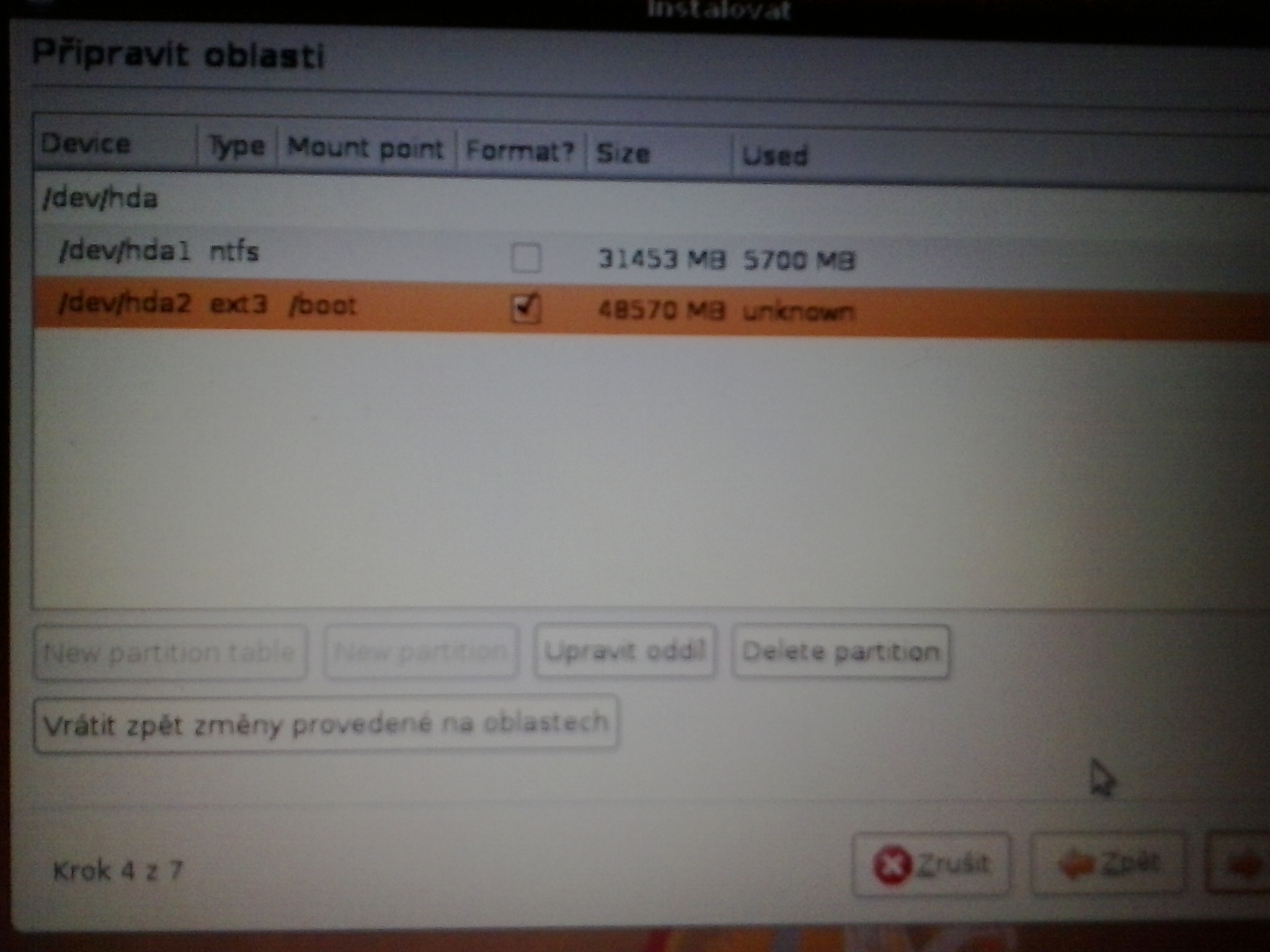 Tak jsem se zase dostal kousek dál.Po konzultaci s ledvinap,tímto děkuji za ochotu.Jsem stáhnul starší verzi emc a vyměnil cmos batery.Teť jsem na tom tak že emc funguje ale pouze z livecd.Při instalaci na disk jsem skončil u bodu 4. viz. foto.Nevíte někdo co dělám špatně?
