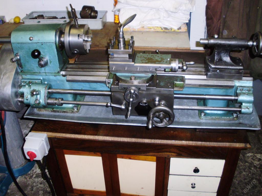 Universálka průměr 125mm,toč délka 500-600mm,toč průměr nad ložem asi 245mm.nad suportem230mm,průchod vřetene 26mm,váha asi160kg. Motor 380v je uložen dole ve skřínce,pohon klínovým řemenem,soustruh má mnoho rychlostí volených jak na řemenicích motoru tak vlastní převodovka v olejové lázni.Podélný posuv aretace posuvu. Je to kvalitní práce co se vejde na stůl a dnes už takových opravdu moc není proto cena pro licitaci odpovídá 80000,- ale zkuste sv18 protáhnout panelákovýma dveřma nebo výtahem. Koupil jsem si ho jako 3 soustruh ale musí z domu včetně jedné dílny což je předchozí inzerát.