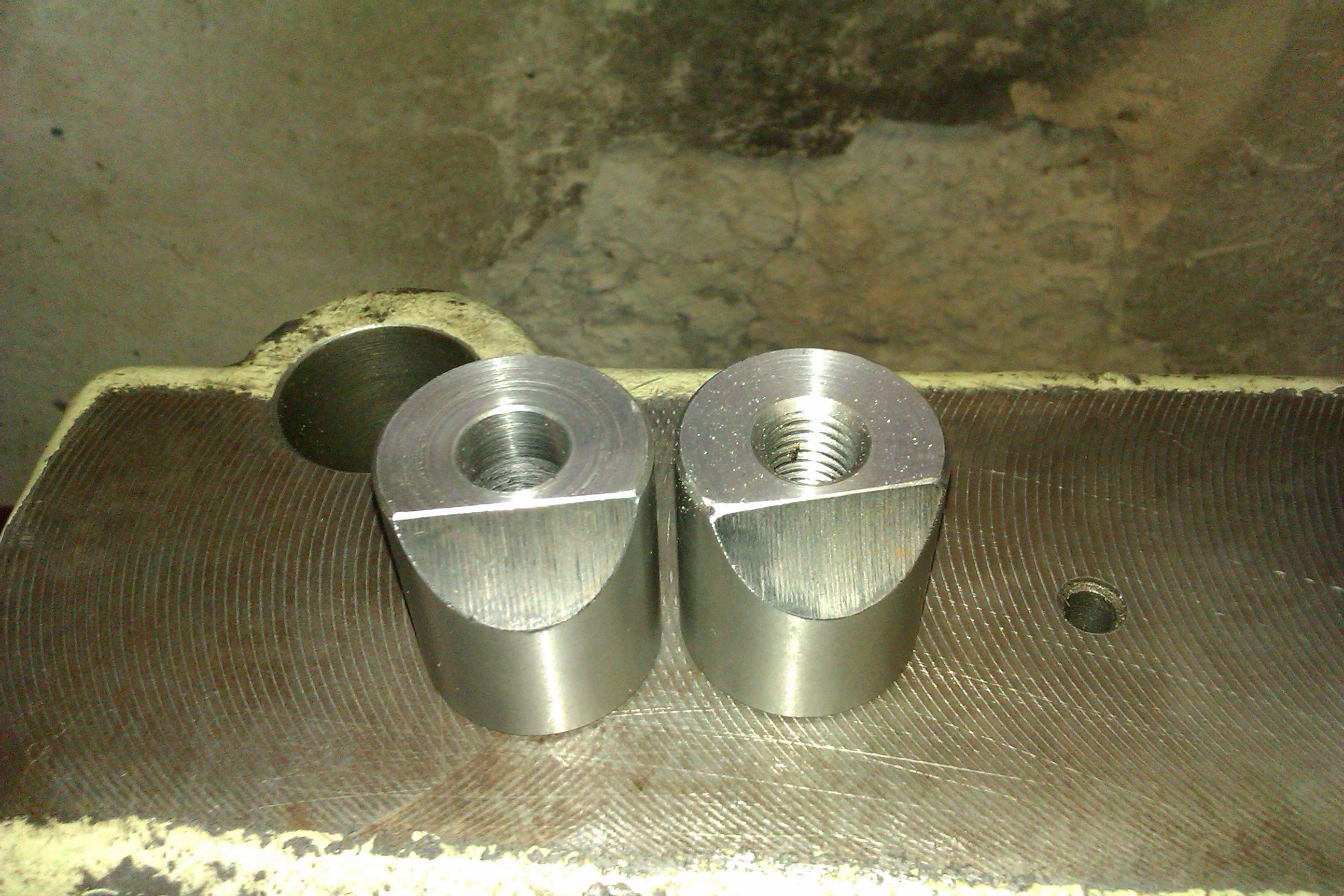 ) maticu vodiacej skrutky pinoly. na toto slúžia dve pred pripravené diery v tele odliatku. Nakoľko som nikde nezohnal kužeľový výstružník D=10 zvolil som o niečo komplikovanejšiu metódu s kužeľovým kolíkom D=8 (nakoľko tento výstružník mám).