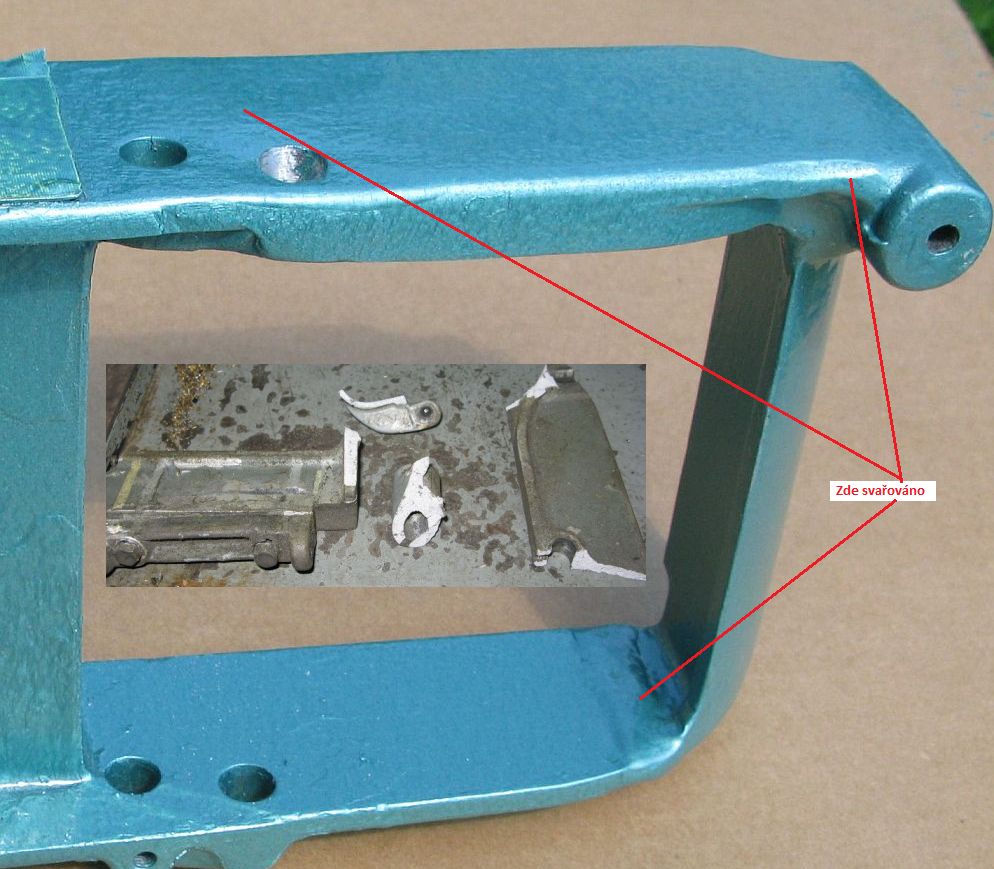 "Hlavní" rozbitý díl (držák motoru a převodu - ten byl na 3 kusy) nemám nafocený.