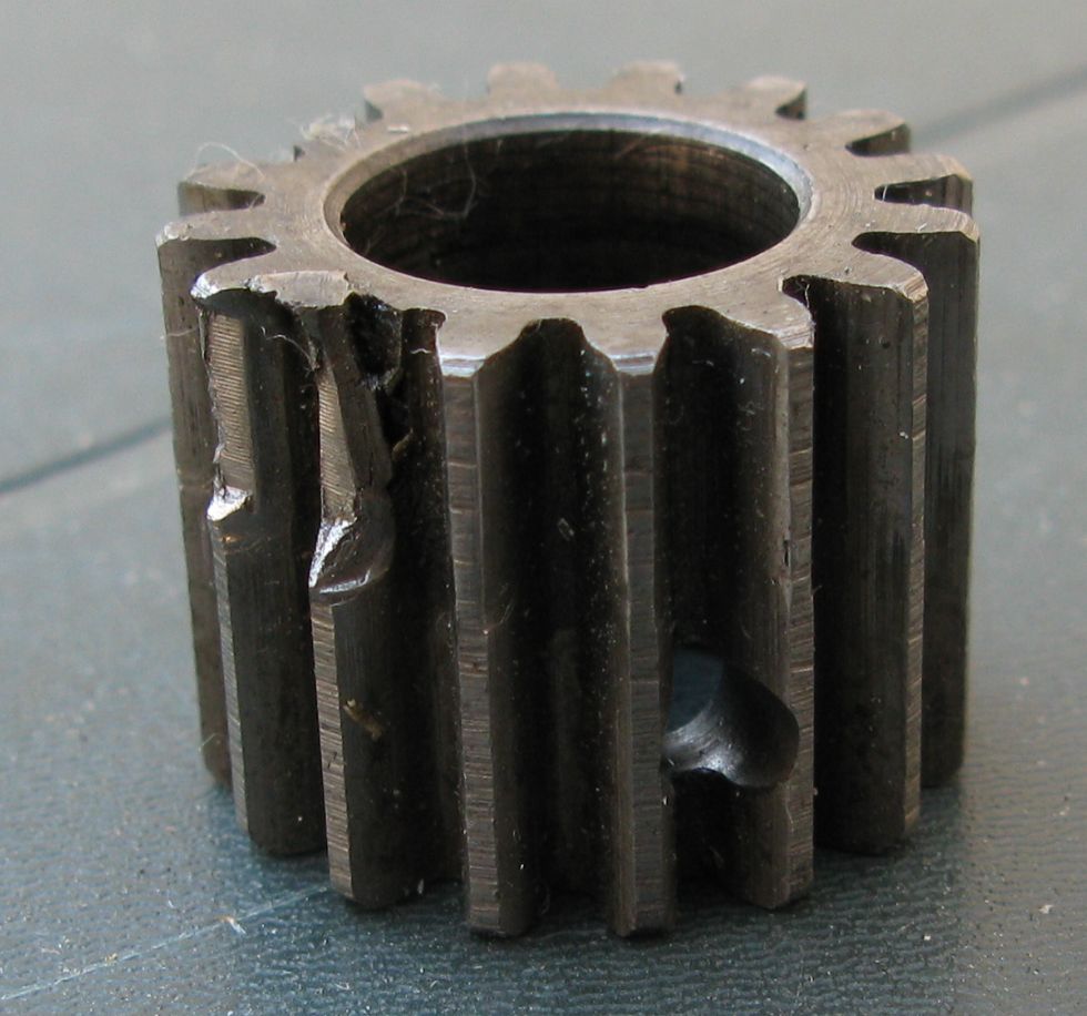 Proto to zničené kolo v převodovce a vykousnutý hřeben a trošku pochroumané kolečko posuvu.