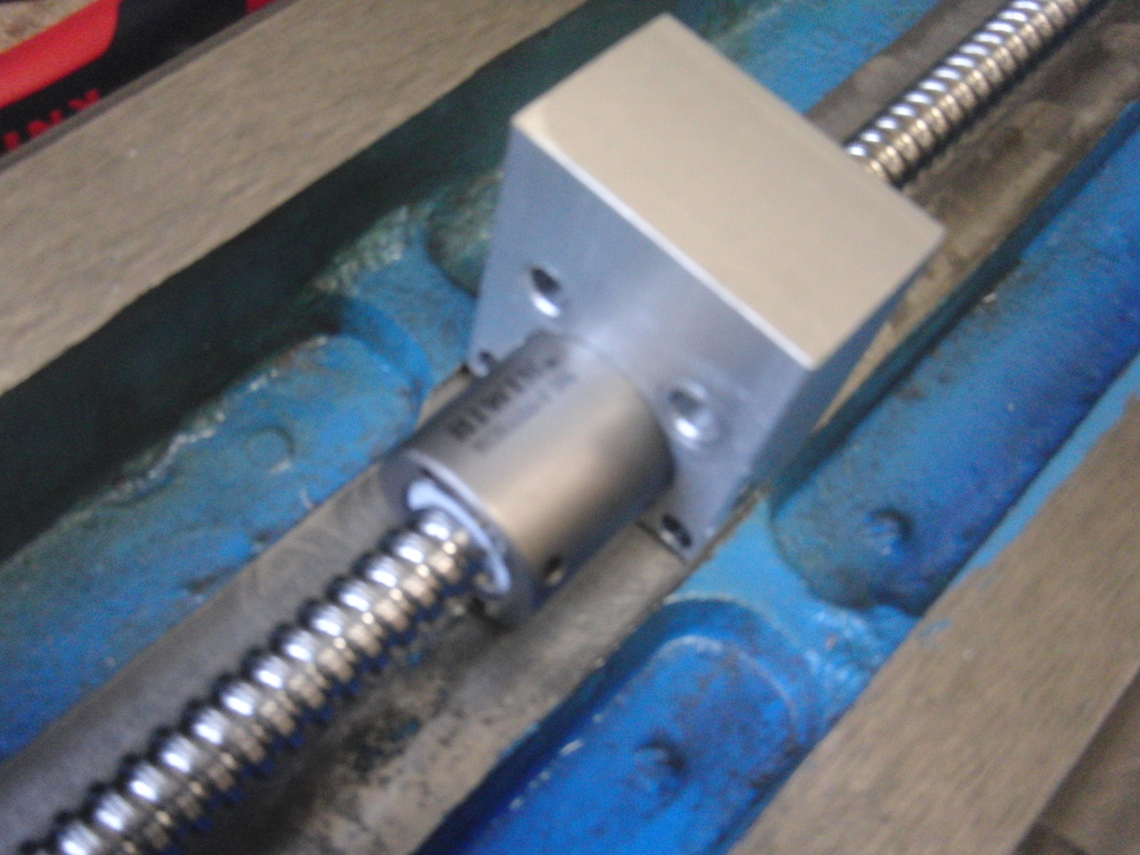 Mezitím jsem objednal nový šroub 12x4 a matici a udělal na soustruhu nový domek s pevným uchycením a jeden s volným popřípadě předepnutým z jedné strany. Obě díry pro ložiska jsem přesně vysoustružil a ložiska zalisoval. Také jsem udělal nový úchyt pro matici na závit M20x1 a zajišťovací matice pro stažení šroubu k ložisku.