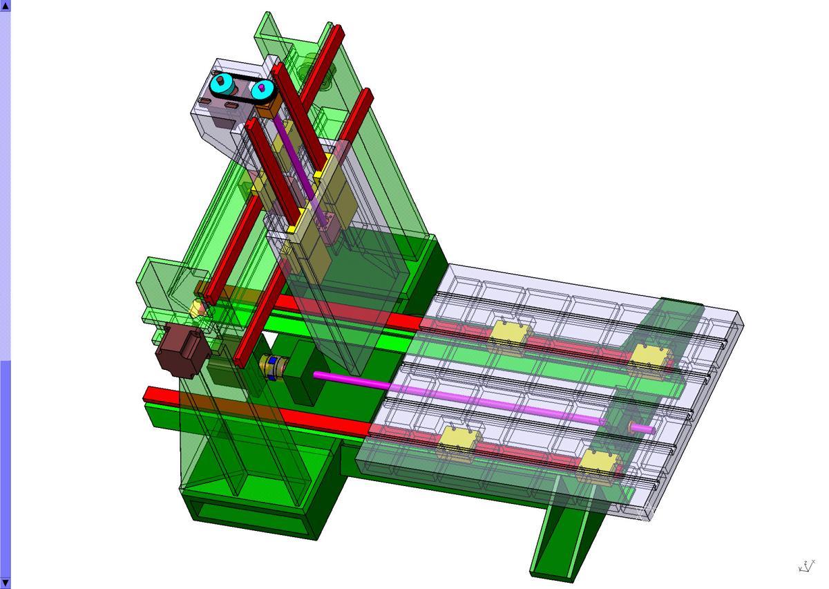 Napadá mě pár věcí. Jednak bych použil uzavřené profily, především na celou spodní část ( tedy vyjma portálu ). Pak tam vidím fůru prořezů a výpalků - kdo se s tim bude dělat ? Nebylo by smysluplnější a jednodužší vymyslet to poskládat z jednodužších polotovarů ? Další věc - jak se bude v praxi realizovat frézování drážek pro lin. vedení osy x ( vedení stolu ) pokud to bude celé svařenec ? A nakonec se mi tam zdají některá uchycení posuvových šroubů poměrně subtilní. To je tak co mě napadlo.