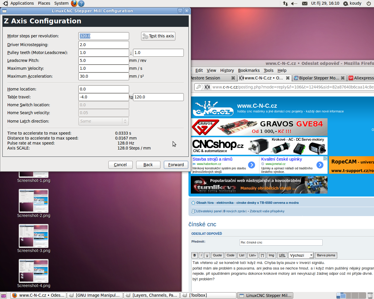 problém č.1 - dostal jsem k cnc nastavení ale nefunguje mi ani s machem ani v linux CNC.