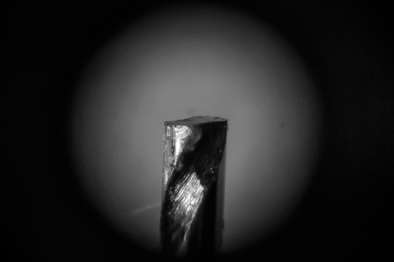 Ostření probíhá tak, že se podíváte kde je asi šroubovice vrtáku, pak nahodíte úhel, šmrcnete o kotouč, otočíte o 180° a znovu šmrcnete. Výsledek se povedl po 5 pokusech (napoprvé se to většinou nepovede)