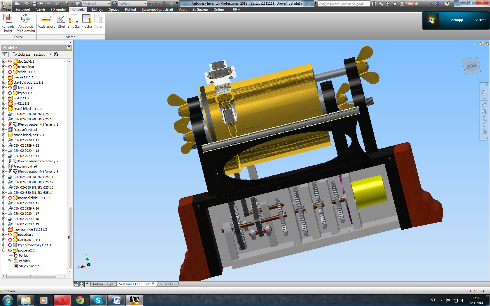 Jasné všechno je z ertalytu, v pondělí by mi měl dojet polotovar a když bude všechno jak má, tak ve středu už bych to mohl sestavit. Jediný problém je prostě v tom ozubení, protože já ve škole bych na děličce udělal s přesností na desetinku a to je velmi špatné + na cnc máme starý program a to kolečko bych dělal hodně dlouho + nejmenší frézka má průměr 3 mm