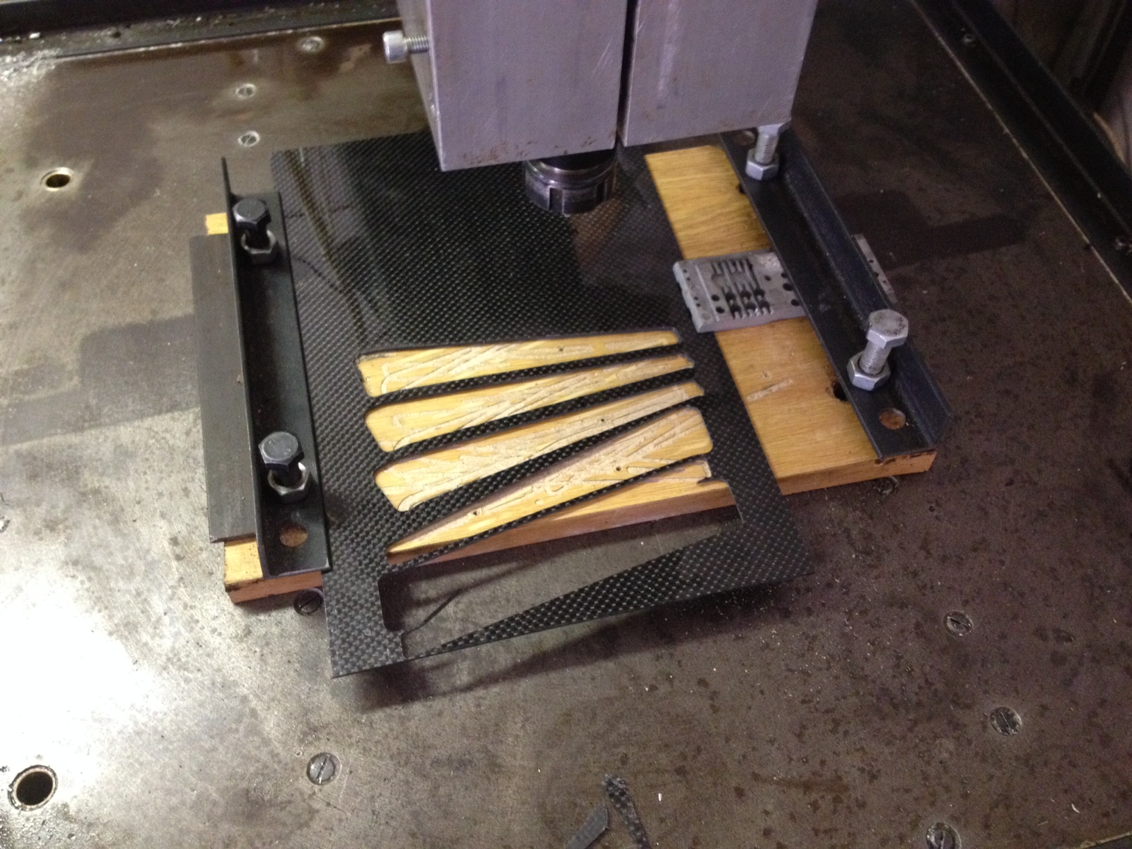 delam takovy pitominy z carbonu na zaves pro kameru na kopteru, delam to technickou TK frezou. dal mam neco gravirovat na hlinikovou krabicku, chtel bych to zkusit udelat navrtavakem.