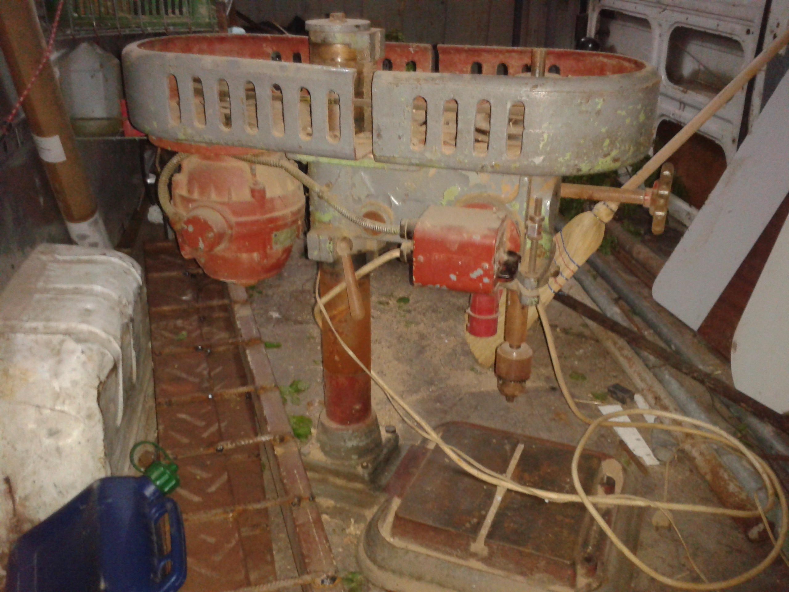 Pánové ,jak to bývá ,vrtačka je bez štítků. Motor je AEG ,ještě se mi nepodařilo rozluštit rok. Jediné logo co jsem našel je na stupnici zdvihu .