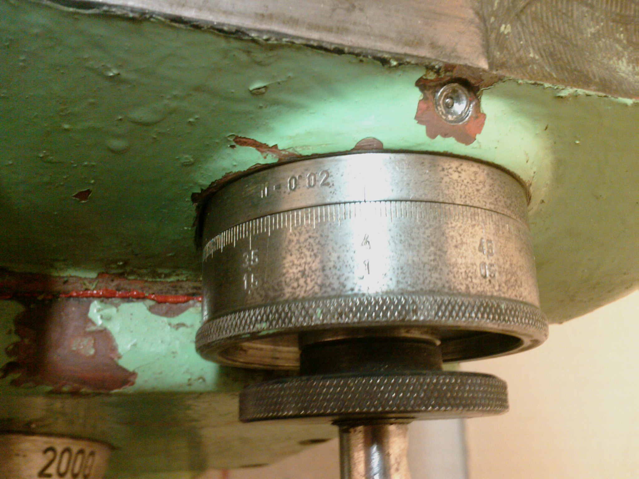 Pokud je hodně zkorodovanej, tak přetočit, znova narádlovat a vygravírovat. Tohle jsem nedávno dělal na příčném bubínku z Volmana. Tam se neodečítal průměr, ale přísuv suportu a nejenom, že jsem ty dílky těžko luštil, ale nemohl jsem si zvyknout na to přepočítávání. Teď je to "slušně vychovanej soustruh". Co zaberu, to tam je.