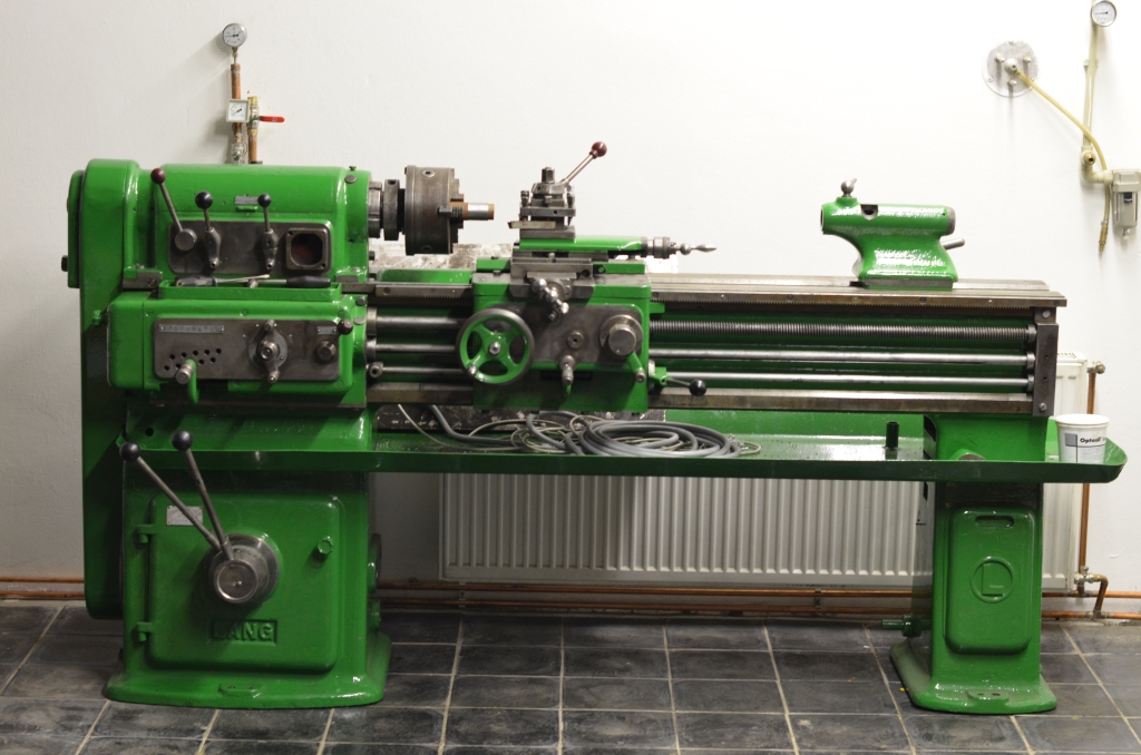 Je to soustruh z padesátých let, výrobce Adolf Lang Zeulenroda v DDR, chtěl jsem ho koupit, ale má malej průchod vřetenem.
