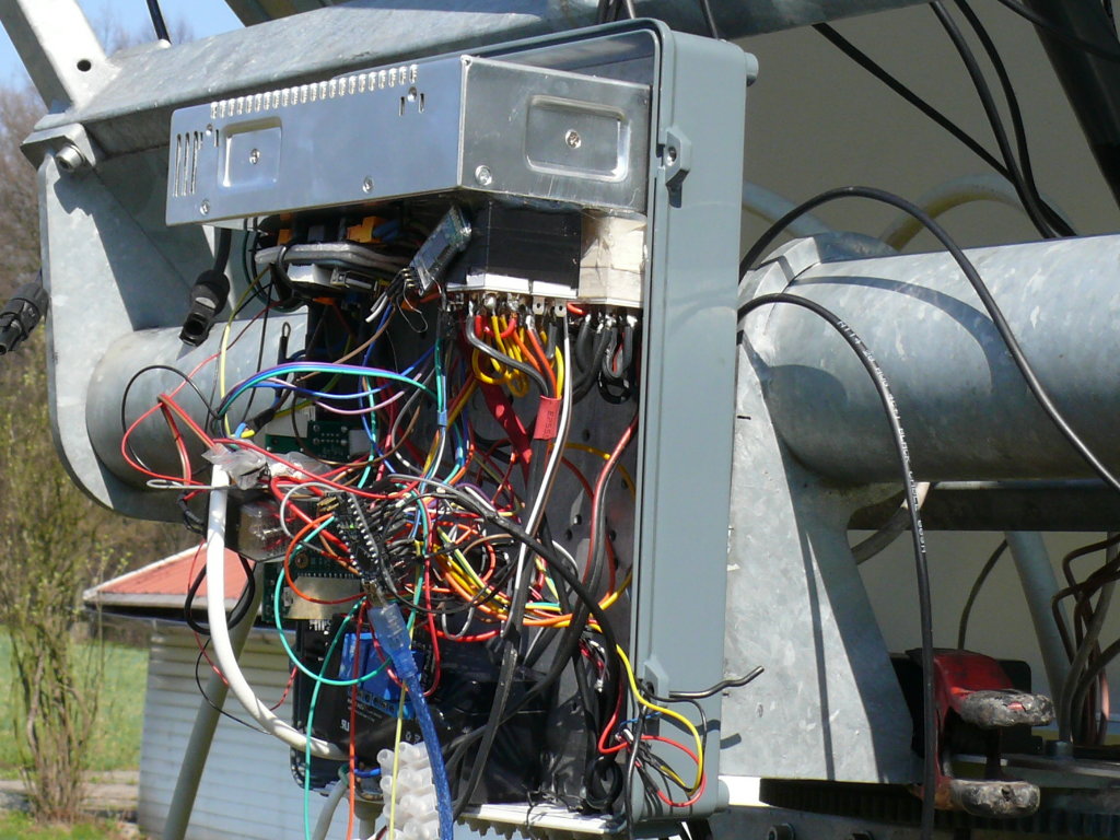 Kdyby se to nemohlo točit pořád dokola o 360st, tak bych to řešil nějakým elektromechanickým automatem. Tj. na konci dotykový spínač, který zastaví hodinový strojek a spustí přetočení zpět na začátek. Tam by byl další poziční spínač, který by toto zastavil. Pak by už jen zbývalo časovým spínačem opět spustit v určitou hodinu časový strojek, aby panel zase Slunce sledoval.