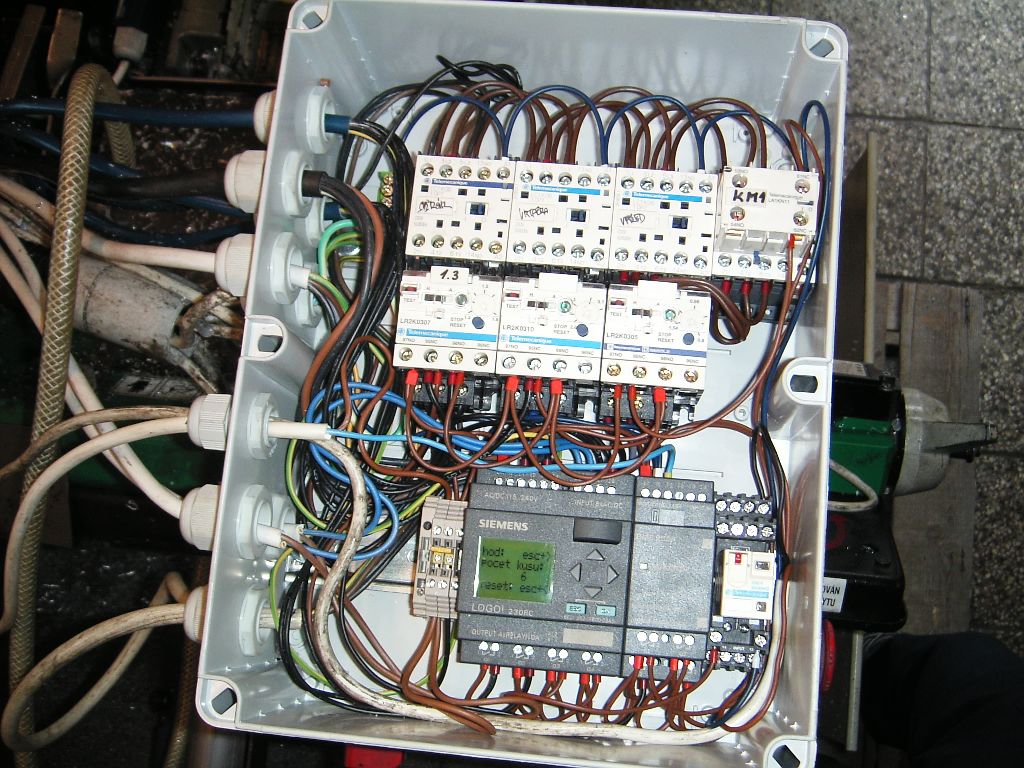 Nedávno se tu řešilo jak řídit pásovou pilu, posílam fotky a video, jak jsme to nakonec vyřešili bez jakychkoliv CNC prvků, které v tomto případě byly naprosto bezpředmětné. Řízení je na bázi mikro PLC Siemens "LOGO".