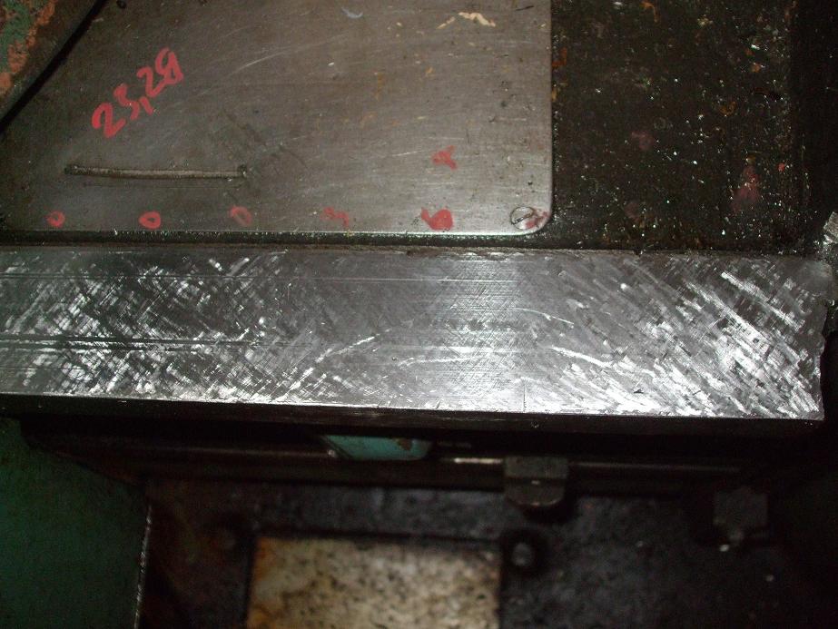 Stoly som nezhadzoval, no pozdĺžny by nemal byť problem- z koncov sa odšrobujú tie čelá čo držia skrutku a vodiacu tyč, vyberie sa lišta, a stôl sa vysunie. Priečny podobne, no treba toho viac odstrojiť. Ja som trochu zaškrabával priečne vodiace plochy, lebo keď som pritiahol lištu, v krajných polohách išiel stôl ztuha, tak som tie konce zaškrabal, a zafliačkoval na berlínsku modrú. Vychádzal som zo spodnej plochy, na mikrometer. No bral som na konci vzadu pri zvislej rybine asi 13 stoviek- škrabákom robota na dva dni. S výsledkom som celkom spokojný, je to podstatne lepšie ako bolo.