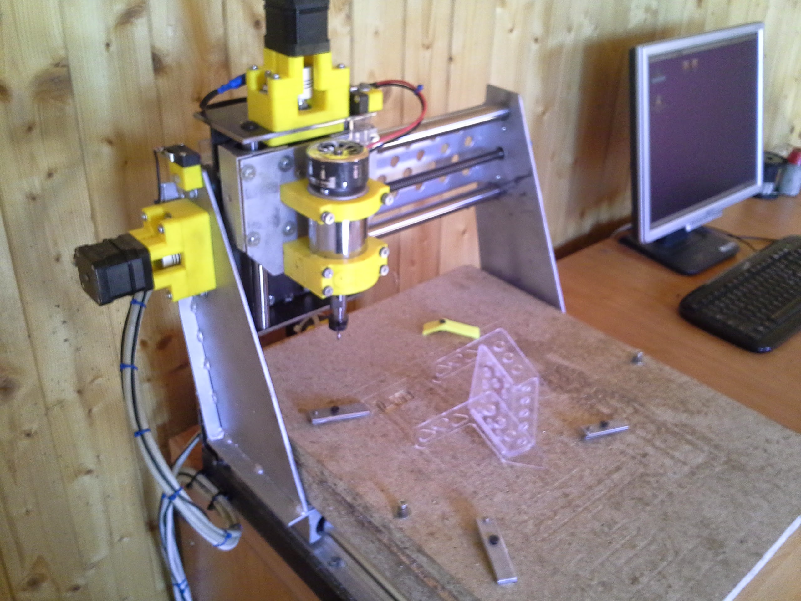 Tak jsem konečně dospěl k funkční mašince . zatím se učím ale plexi a ostatní plasty to frézuje pěkně zkoušel jsem hliník , ale jde to jen opravdu jen tak po 0,2 . 3mm frezkou .