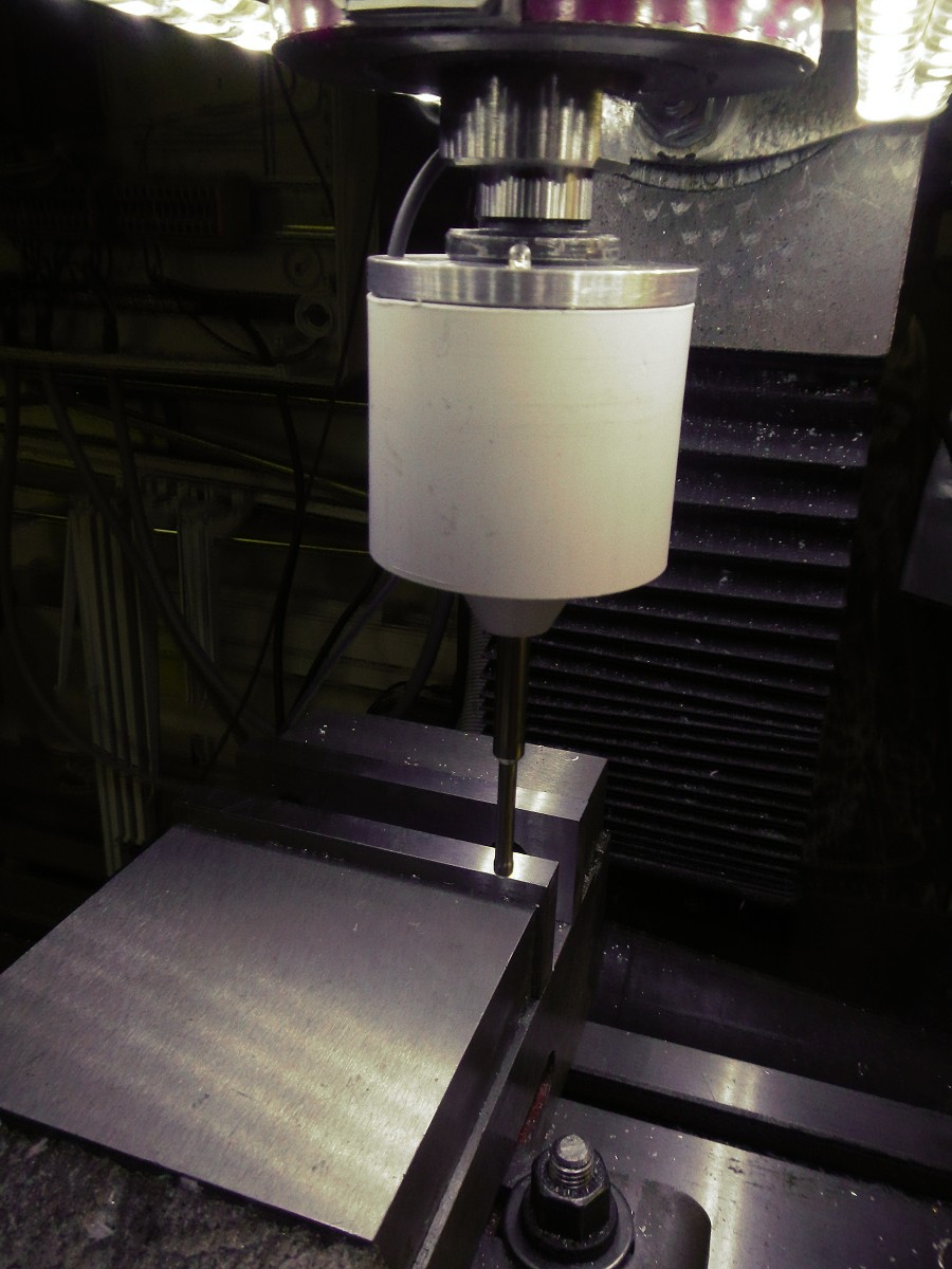 CNC potřebuje sondu - první pokus tykadélka, možná je zbytečně dlouhá, naměřená citlivost opakovaným najetím je do 3 tisícin.