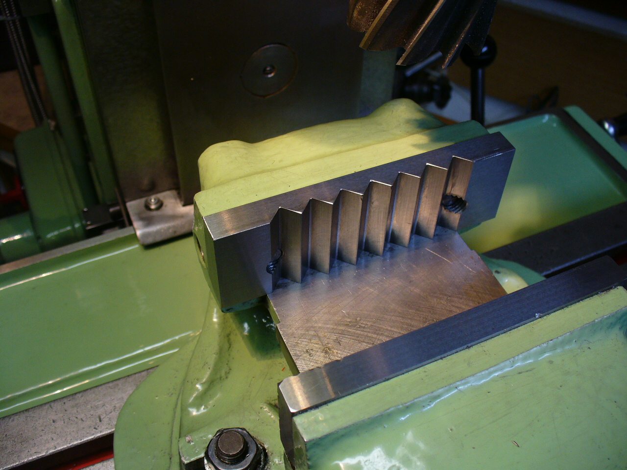 Jednoúčelová pevná čelist do svěráku na dávkové frézování kulatiny o průměru12mm, drážky o rozteči 12mm s tím, žes pak dají upnout i kulatiny od průměru cca 6mm ale primárně je to na ty dvanáctky :)
