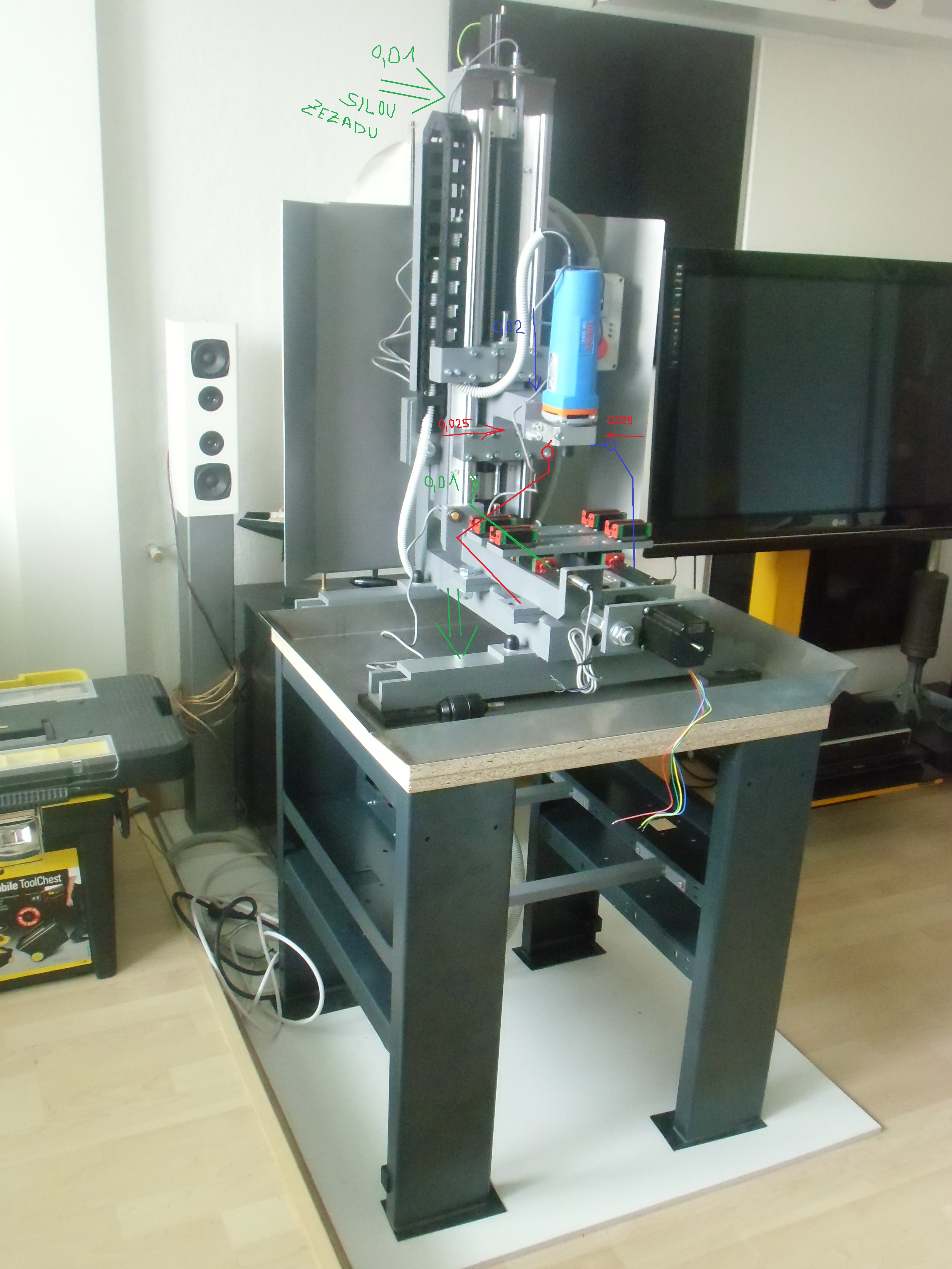Ten spodni svar, to slabe místo jak mi tu kolega upozornoval sem diky malému ramenu na hodinkách meril dole, ale zato jsem se do toho rukou poradne oprel, resp. tlacil podle sipek a 0,01. Uchylkomer byl v miste, kde bude osa Z při obrabeni nejčastěji, verim ze vis bude hodnota vyzsi, ale v hornich polohách Z budu pouze menit nastroj.