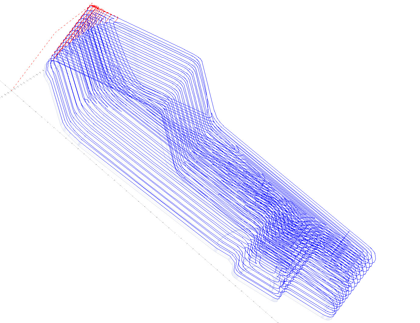 Možná by to šlo částečně předhrubovat (adaptivní s omezením hloubky) a potom použít strategii 3D Contour, viz obrázek. To už vypadá daleko líp, ovšem přijdeme o konstantní zatížení nástroje.