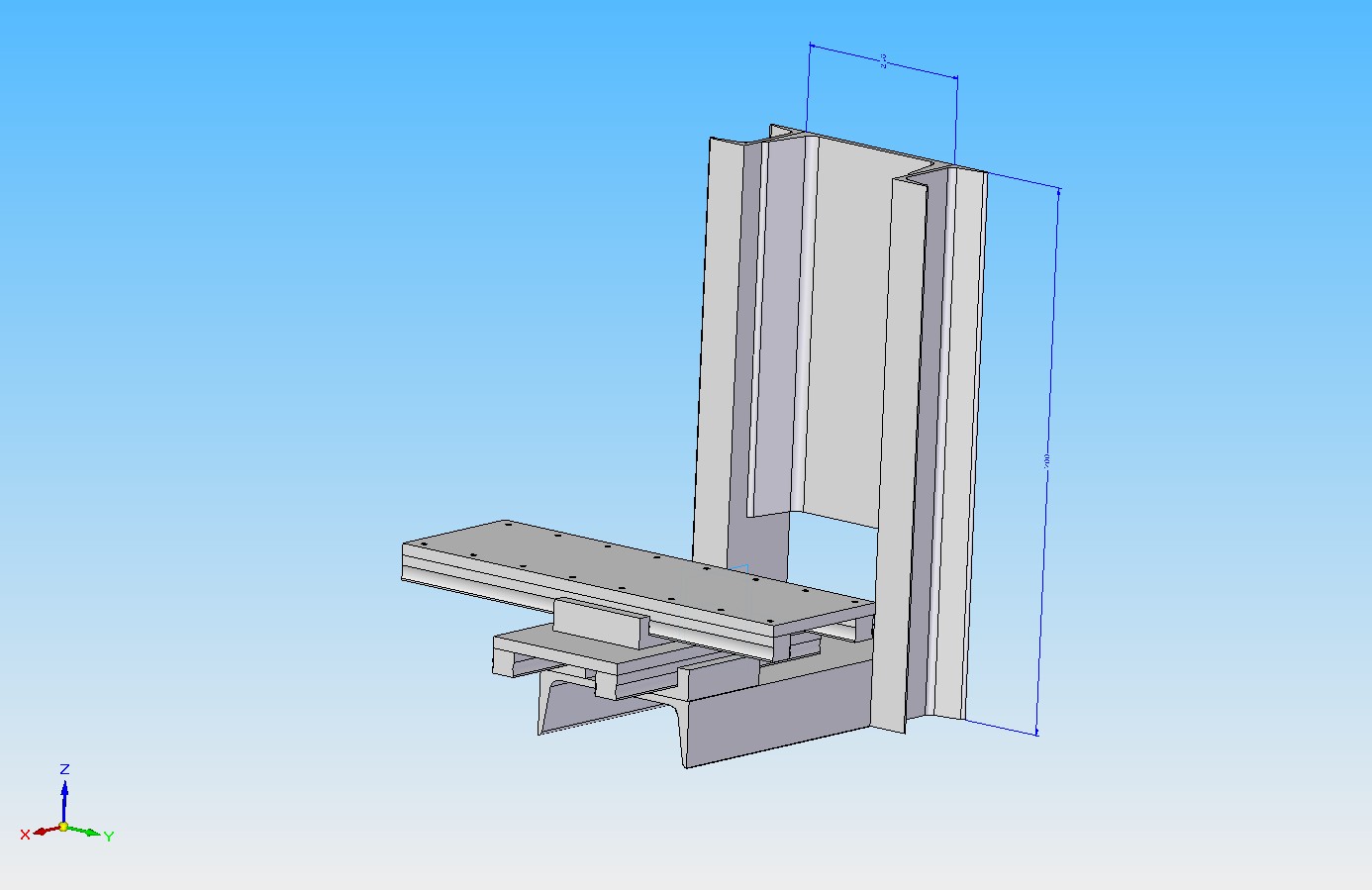 Zatial najslabsie miesto vidim na pate "stlpu'. Profily spolu zoskrutkujem, zvarat to moc nechcem. Duralove platne, voziky a kolaje mam.