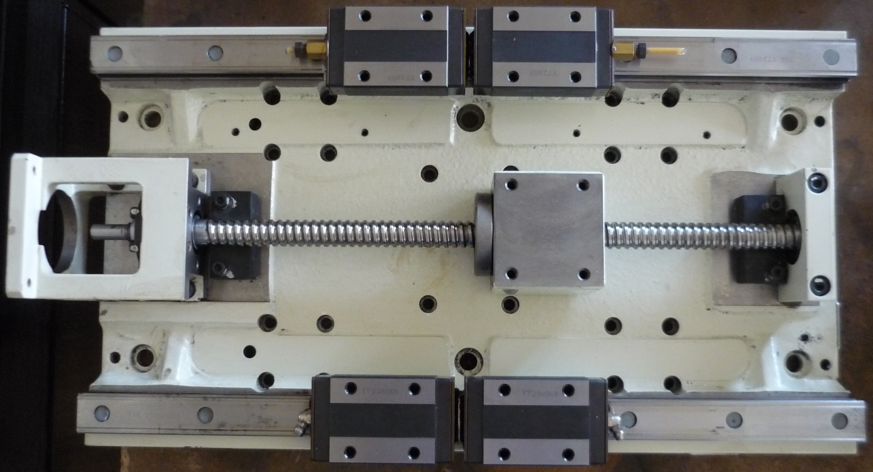 viz moje předchozí poznámka ta tvoje deska je slabá.. nevymejšlej nesmysly jak to nacpat do slabé desky ale vyměň ji za adekvátní sílu.. cca 40mm, vždycky jsou uchyceny dva lineáry a jen jedna řada vozíků, je to z důvodu že nikdy neuděláš nic tak přesně.. udělat dvě dorazové hrany pro lineáry není problém jestli budou od sebe třeba 250 nebo 249,99 nebo 250,01 je fuk na druhé sraně uděláš jednu hranu pro vozíky zapřeš se a ty druhé se "uloží sami" a budou přesné podle kolejnice.. takže budou zase třeba těch 250mm, když to uděláš to i to tak dole budeš mít 249,99 nahoře třeba 250,01 a už ty 2setiny budeš rvát.. a to je "slušná přesnost" realita bude mnohdy uplně jiná.. proto se to dělá takhle, pak je "uplně jedno" jak se to udělá, jde jen o rovnoběžnost, kterou zajistí bruska na jedno upnutí..
