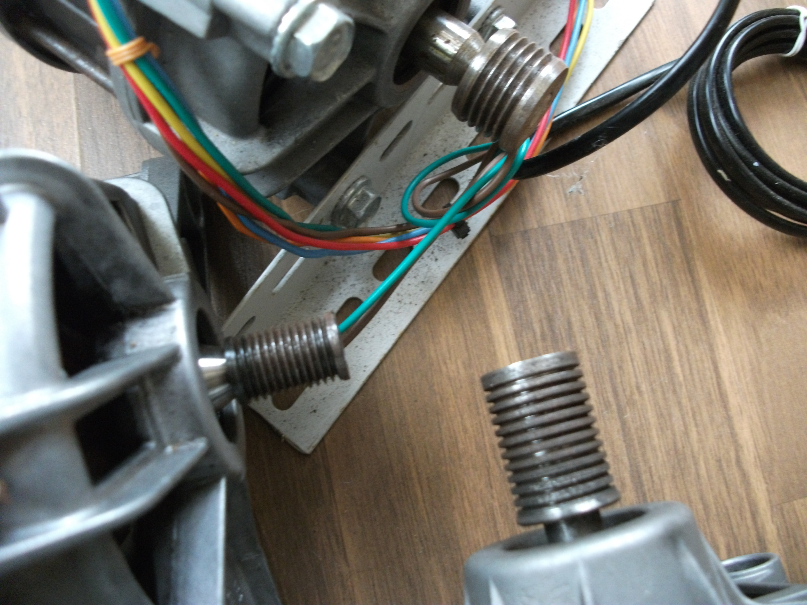 A taky k zástrčkám motorů...asi těžko seženete původní přívod. Většinou jsou 6ti kolíkové-2tacho,2rotor(přívody na uhlíky),zbytek-2 stator. Ale i u 6 jsou podle výrobců různé rozdíly v umístění v zástrčce..tak se podívat po vodičích. Někdy je i 7mi kolíková...do zástrčky je vedena i zem. 8kolíková je 6kolíková klasika asi s dvěma vinutími statoru...změřit a propojit. Přívody do zástrčky dělám z vodičů s autokonektory (izolovat stahovačkou mosaz.konce,ať si to nezkratujete v zástrčce)...na vyzkoušení M stačí 4 přívody-2 tacho,1rotor,1stator...a zbylé R a S propojit...a je motor v serii. Změna otáček je takto možná přehozením přívodů buď do statoru,či R. ( Až poté vedu i nazpět do regulátoru ty původně propojené vodiče R S na reverzní přepínač)