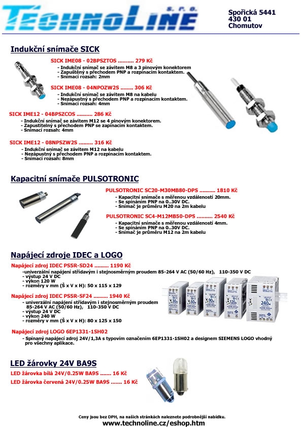 Nabídka od dodavatele-indukční snímače, zdroje...........
