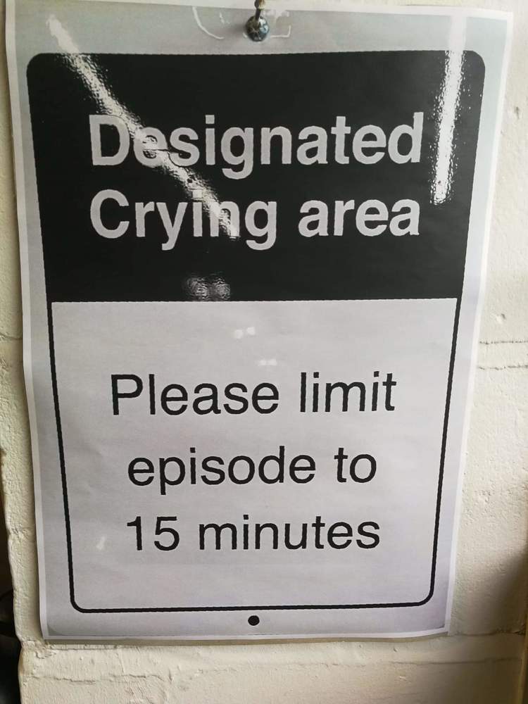 V administrativní budově byl u prvního schodu u schodiště obrázek ve výši očí, že při chůzi po schodišti se musíte držet zábradlí.