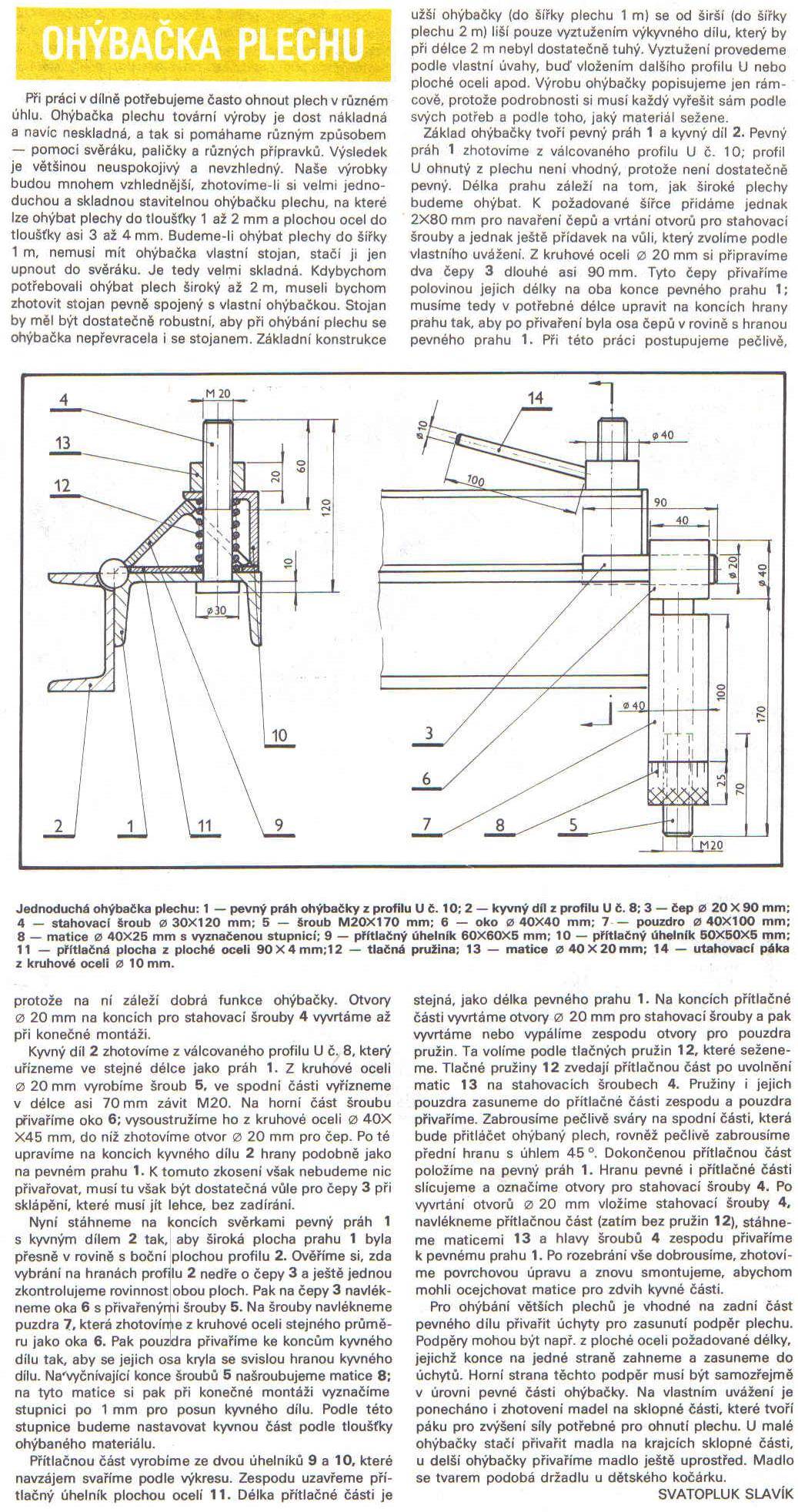 Za prvé se podívej na opravdové ruční ohýbačky plechů ,jsou to masivní litinové odlitky hustě řebrované jsou na nich masívní kalené lišty a to mají možnost ohýbat tloustky 1,5 max 2 mm.Proč asi????