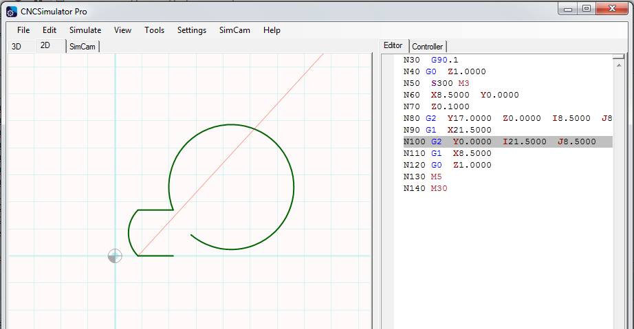 N100 G2 Y0.0000 I21.5000 J8.5000