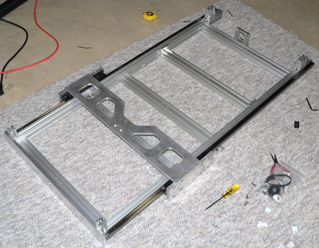 Rozjezdy X-1100mm, Y-700mm,Z-140mm. Pojezdy na lineárech, kuličkové šrouby a zbytek hliník, bočníce 16mm, drobnosti 10mm. Mám tu pár hliníkových profilů, tak bych je chtěl využít.