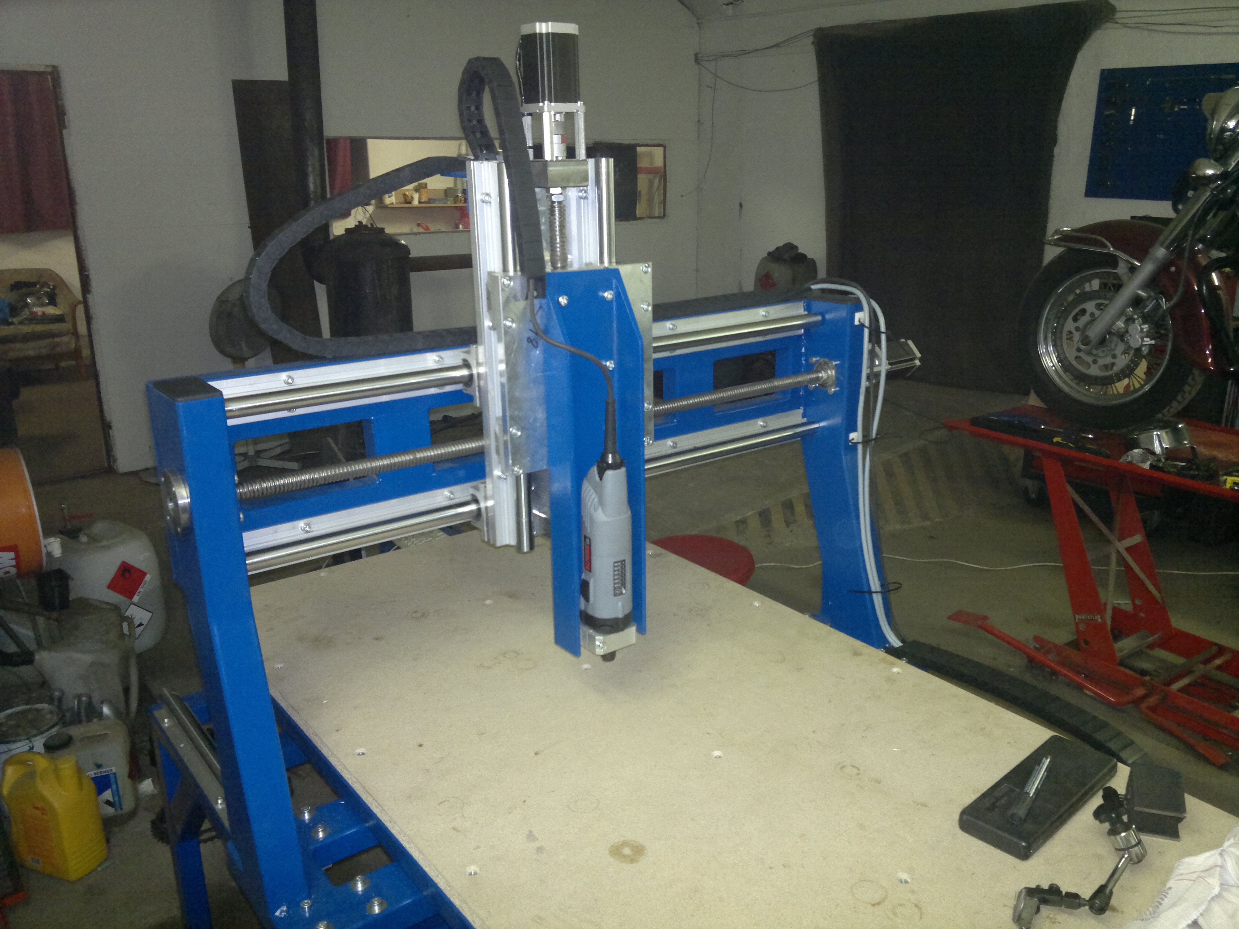 tak už je hotovo a běhá to uplně v pohodě zatím jsme zkusili jen překližku 3mm frézou 1.5mm posuvem 800 a přesnost jsme naměřili do 0.02 katže velká spokojenost mašina je krásně tuhá nic se nekroutí ani nechvěje co víc si přát