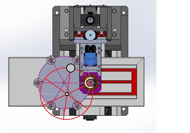 Pre svoje BT30 ATC vreteno riešim návrh zásobníku nástrojov a z priestorových dôvodov mi celkom nevychádza klasické riešenie karuselového zásobníku ktorý sa lineárnym pohybom pneu. piestu dostane pod vreteno. Totiž - v polohe pod vretenom by mi ďalší nástroj v poradí kolidoval s hlavou vretena (Z-ová os), takže by som musel spraviť disk neúmerne veľký počtu nástrojov. Od člena fóra prišiel návrh (za ktorý veľmi ďakujem) posunúť zásobník smerom dopredu a nástroje ukladať do zásobníku pod uhlom, viď. priložený obrázok. Príde mi to ako vcelku jednoduché a elegantné riešenie, na druhu stranu pri výmene by bolo vreteno nižšie (kvôli potrebnému pohybu osi Z nahor pri výmene) a tým pádom by som si ukrojil z už aj tak malého rozjazdu osi Z.