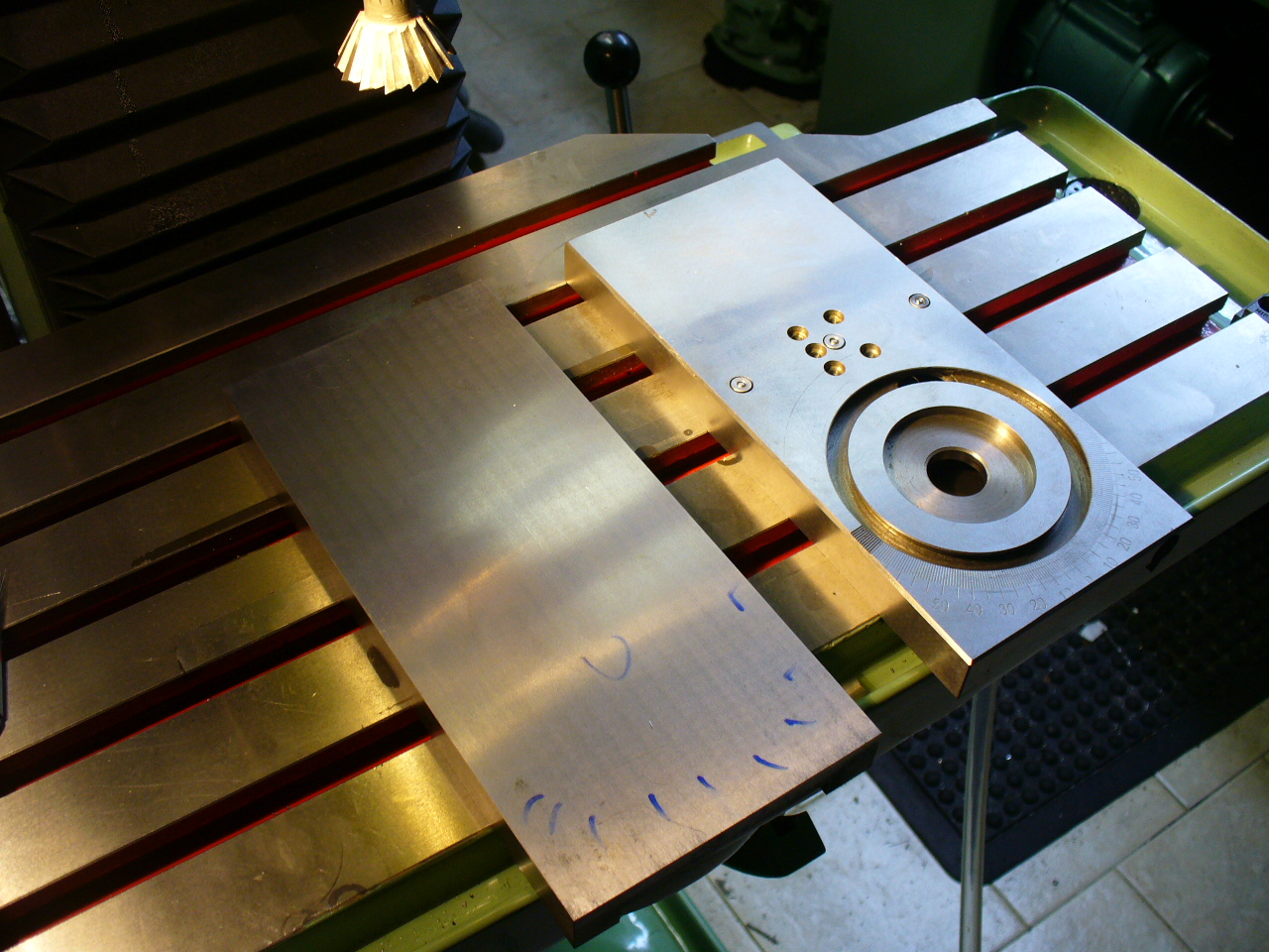 Minulý týden jsem vyráběl vrchní část příčného suportu na MN80, součástí je i stupnice a čísla na úhelníku a to už se na tom gravographu dělá věru blbě