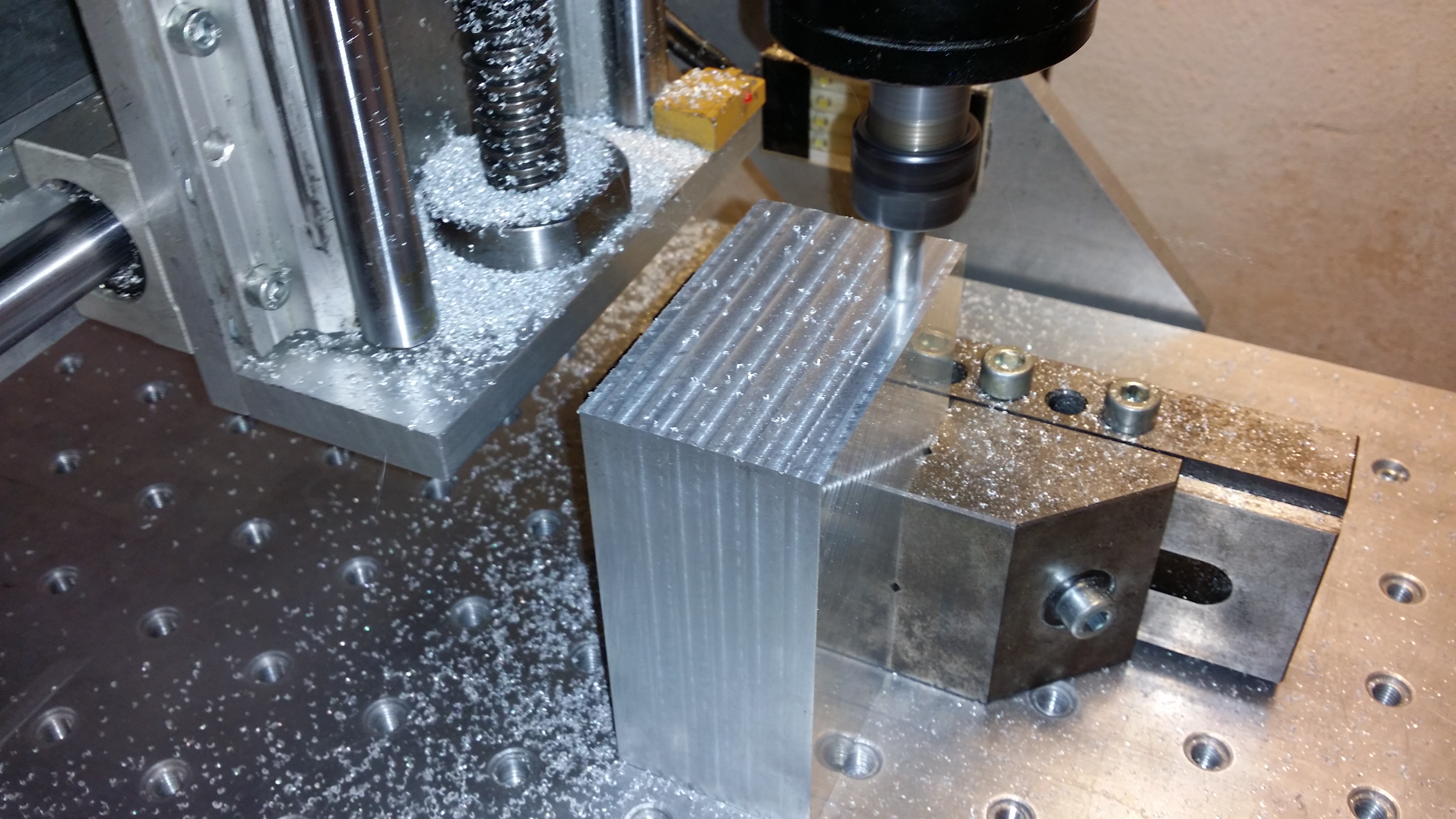 - A nějaké to video Frézováni na hrubo posuv 1200 mm/min 7000 ot/min - nastroj 3 břity 10 mm délka 45mm