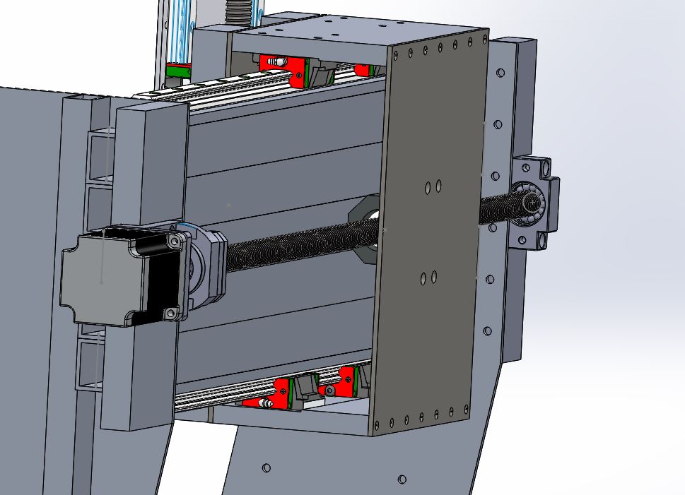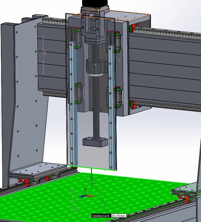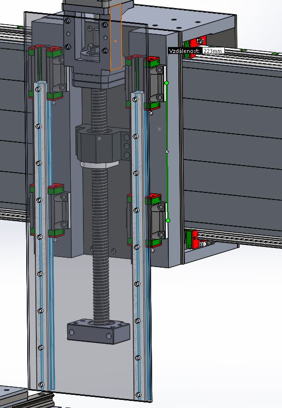Těžko říct jak moc to bude těžší, ušetřím sice 6 kilo za motor+ kilo za držák, ale matka s držákem váži skoro stejně jak šroub.. ale zase pod vozíkama musej být slušný kostky aby se tam vešla ta matka s držákem, to zase přidá..a proč jsem to tak udělal? v badins cnc se to teď řešilo, předtím v CNC Cjuz.. je těžký si něco vybrat, když to někdo udělá za A, píšou lidi udělej to za B to je blbě. když udělám za B, tak je správně A.. no ale když se nad tím zamyslím, tak to asi půjde udělat uplně stejně když to otočím a pohyb Zka zůstane stejnej.. akorád frézka bude na desce chycená až až daleko pod vozíkama, abych zachoval průjezd pod portálem, nic nezavazelo a zachoval dráhu Ztka.. Ve výsledku, 8NM motoru bude přece jedno jestli tahá 20kg nebo 23kg ? myslím si že lineáry, i šroub sou předimenzovaný na podstatně těžší Ztko / portál..