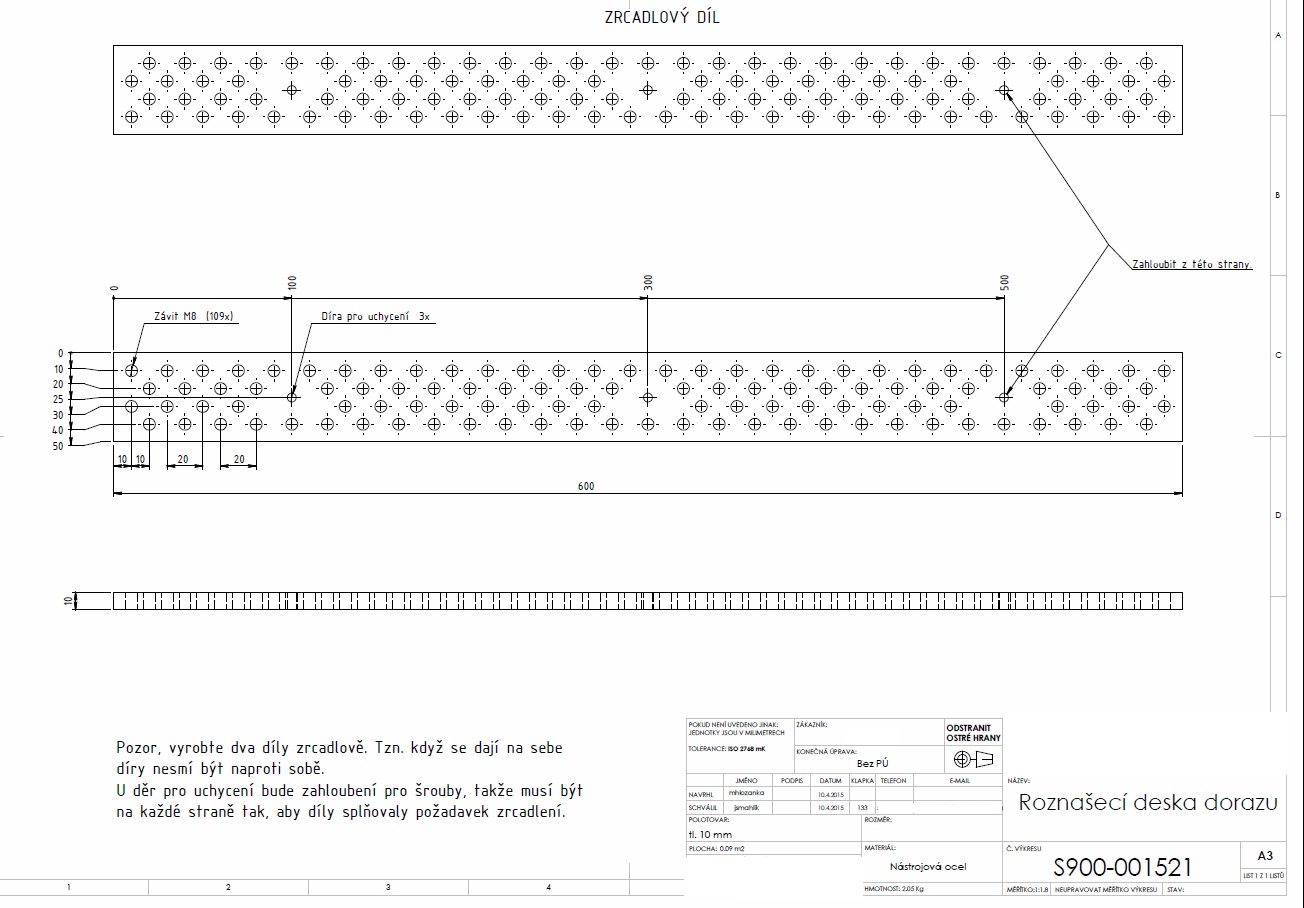 Dovoluji si Vám zaslat cenovou nabídku na výrobu roznašecí desky dorazu č.v. S900-001521.