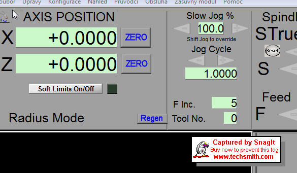 Přepokládám při zadání G01 F1000 pojedou osy na max. a při zadání např. F20 pojedou osy v rychlosti 20%. X 300mm/ot a Z 1200mm/ot.
