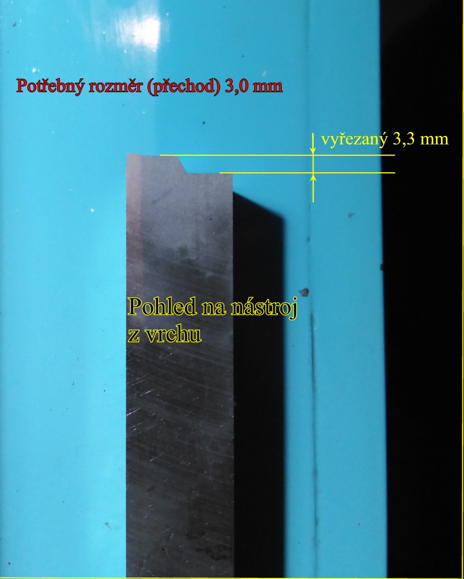 Problém je při výpočtu. Například se do nástroje vyřeže přechod, který je potřeba na polovinu 3,0 mm, ale při soustružení se projeví jako 3,3 mm.