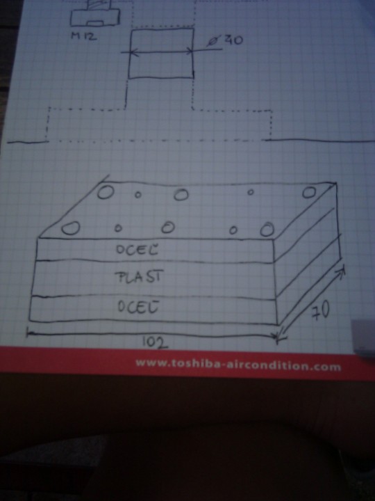 Otázka je, aký plast dať medzi tie oceľové platne. Napadlo ma plexisklo- ale skúsil som do 18mm rezať závit a láme sa to... Ešte ma napadá pertinax, ale tam sa bojím nasiakavosti - bude sa to chladiť intenzívne vodou.