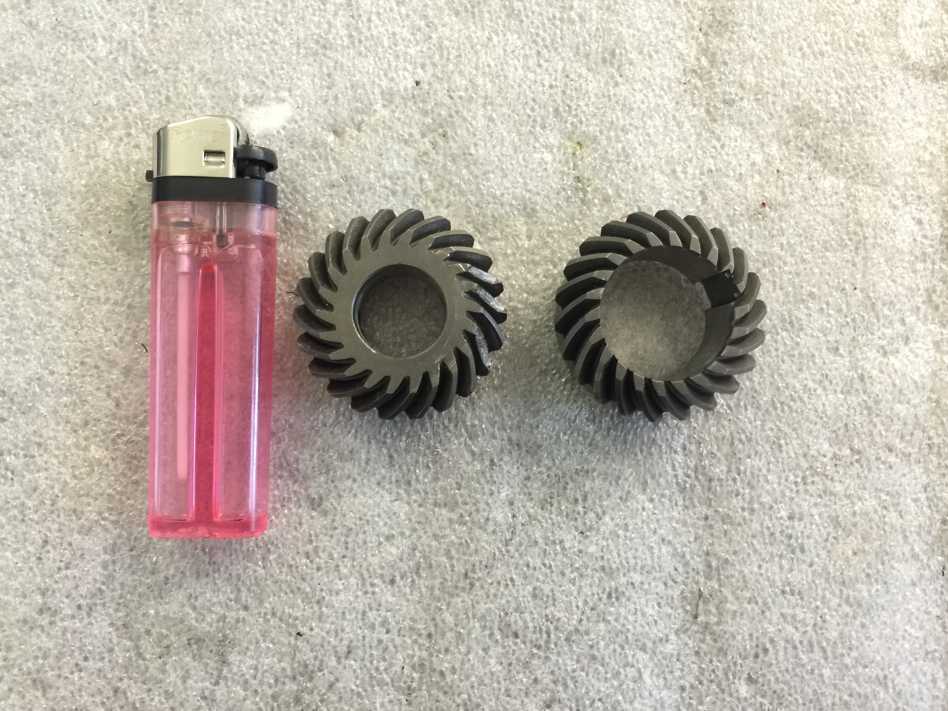 Ještě je možnost vyštouchat rovné zuby, ale převod je hlučnější a je na menší síly. Což by u dřeva u asi nevadilo. Nevim jak by to zvládalo vysoké otáčky .Určitě tam točíš aspon16000ot/min. Tam to vycházelo kolem 6000kč za obě kola.