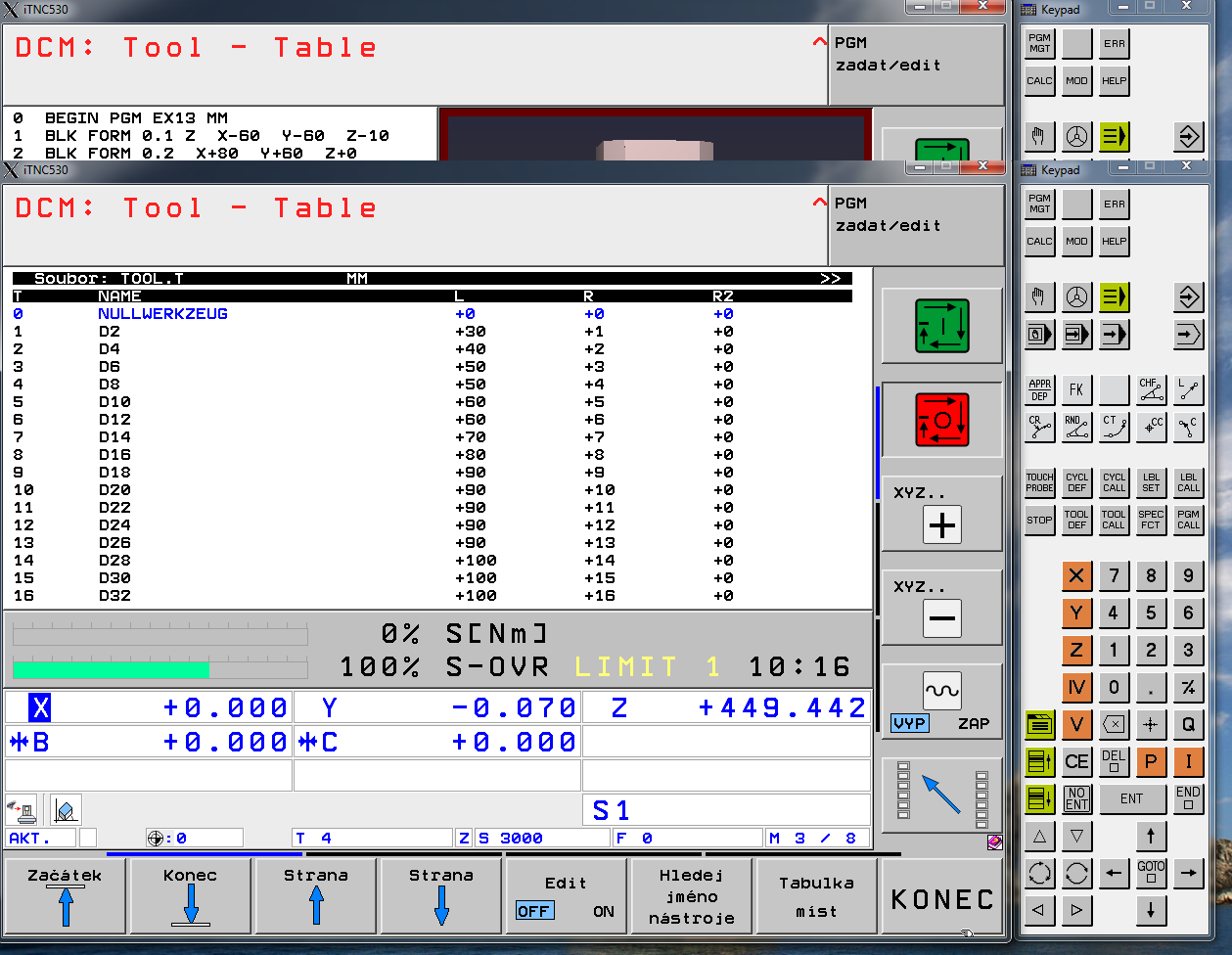 vzhledem k tomu, že již nemám možnost pracovat na opravdovém stroji, stáhnul jsem si simulátor Heidenhain ITNC530.