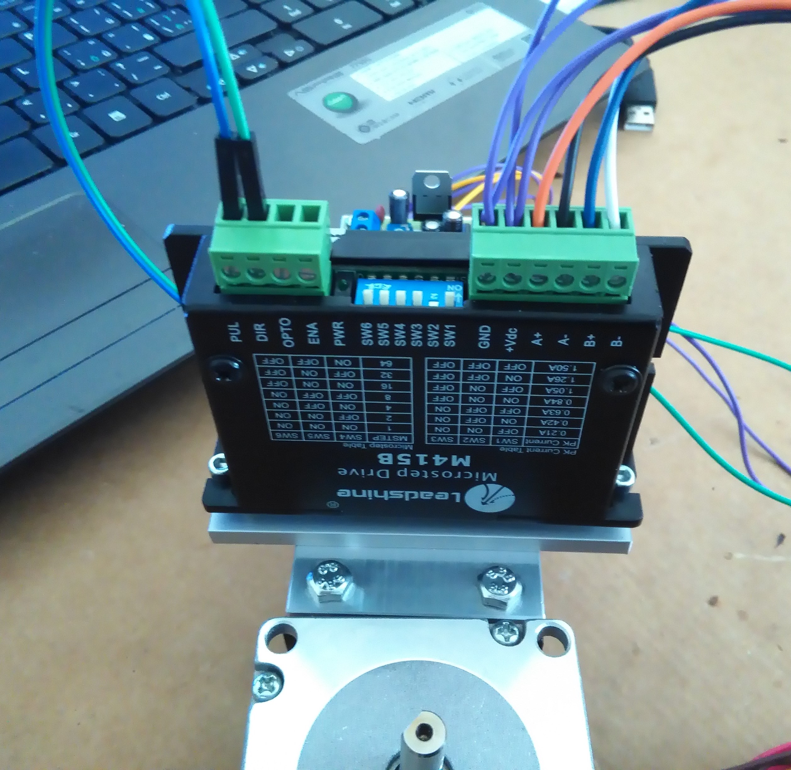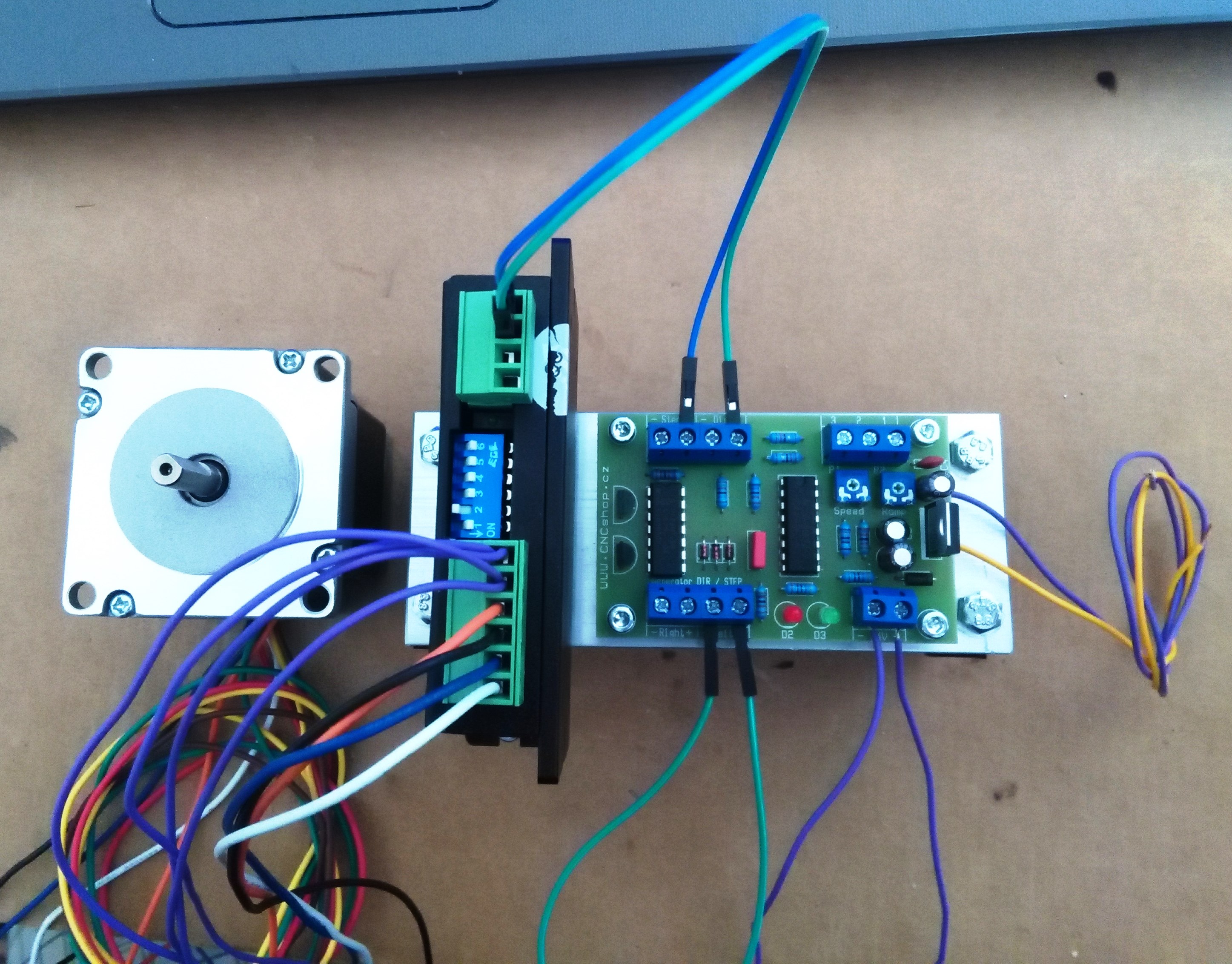 Mám to zapojeno napřímo jak je vidět na fotce. Zelený a modrý vodič.melsoft píše:Máš tam pullup rezistory? U generátoru píšou, že má otevřené kolektory a u driveru zase, že reaguje na vzestupnou hranu signálu. Aby to fungovalo, měly by být oba signály připojeny k +5V přes rezistory jinak signály nikdy nebudou mít úroveň HI.