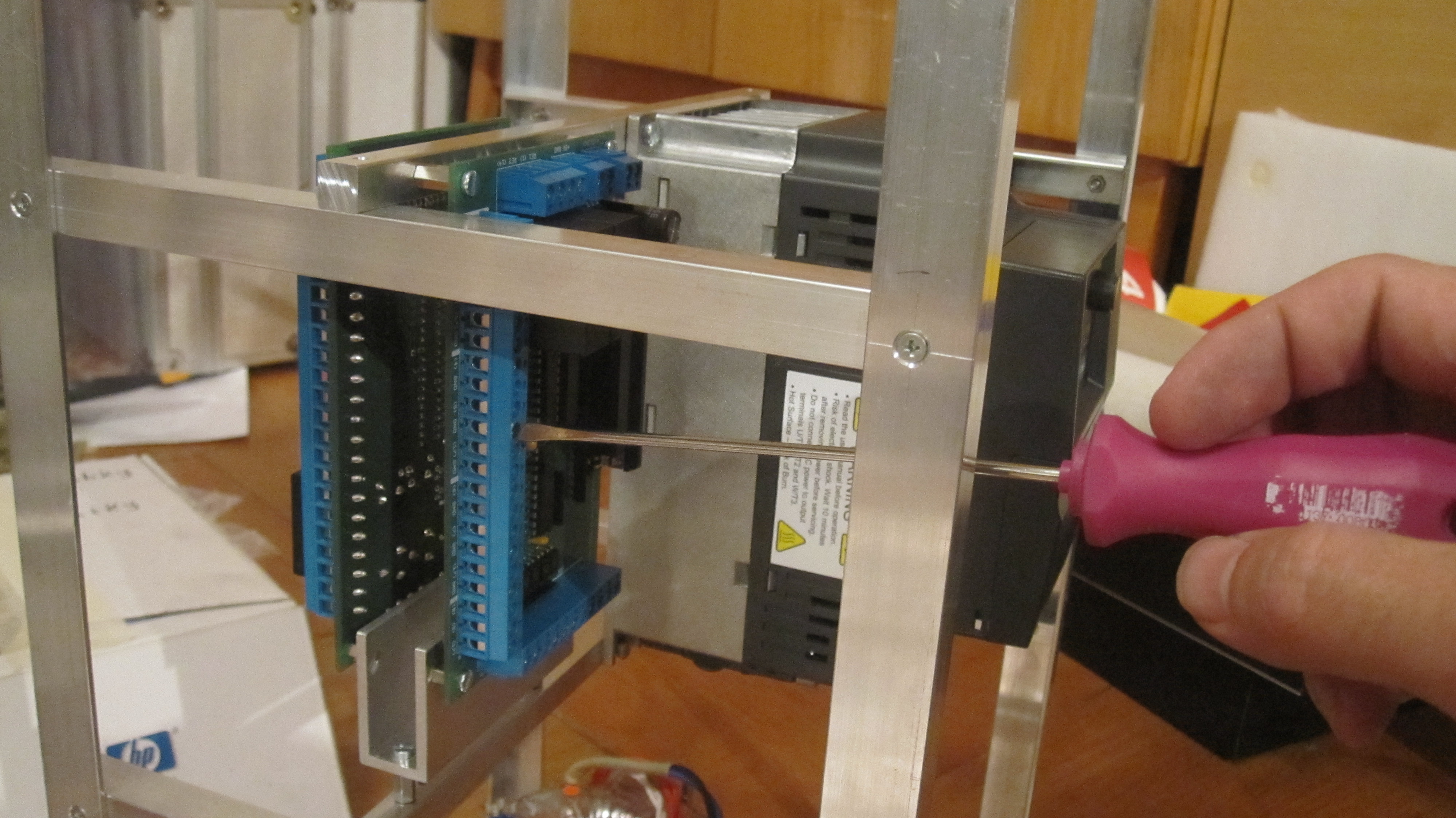 Elektriku dělají dva odborníci. Jeden je elektromechanik – obor rozvaděče (pro něj se frézka staví) a má představu o tom, jak se kam dostane a ten druhý je konzultant v oboru elektronických součástek a programátor jednočipových procesorů. Jde to tak trochu mimo mě. Nicméně připomínky jsem jim předal a hned jsem obdržel obratem uklidnění s fotkou, že je na to myšleno.