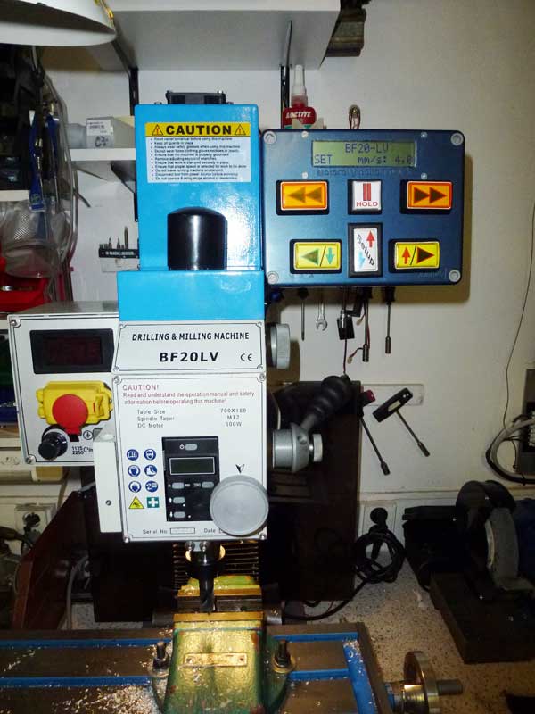 . ALE !!! Výšku jsem mohl odměřovat vestavěným DRO, ale zbytek ne. Tady jsem pochopil jaká je pohodo mít DRO na celé mašině. Zrovna v té době měli v Unimaxu slevu na 600mm odměřování a tak jsem koupil hned dvě, že to narvu i na soustruh. Předpokládal jsem že chlapci udělají i akci na 150mm odměřování, ale nic. Tak jsem minulý týden koupil taky dva kousky a dnes jsem "oDROoval" Xko, sice je delší, ale jednodušší. Kryt je udělaný z profilu 25x25 na sádrokarton a potažený fólií, vydrží to víc než lak a hlavně je to za 10 minut kompletně hotové. Když jsem byl u toho, tak jsem kličku odsadil o 5mm aby tam bylo víc místa.