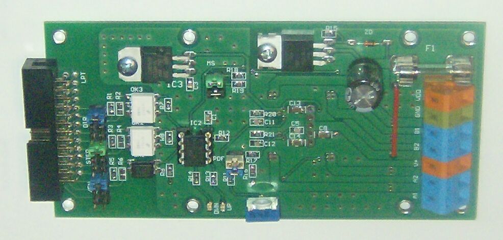znizenie prudu po 15 sec(alebo podla zelania); indikacia kroku hore/dole dvoma LEDkami; opticky oddlene DIR, STEP a /ENABLE vstupy; istenie tavnou poistkou; prepatova ochrana tyristorom; univerzalna doska ktora sa da jumpermi nastavit ako 1 zo 4/jeden LPT port