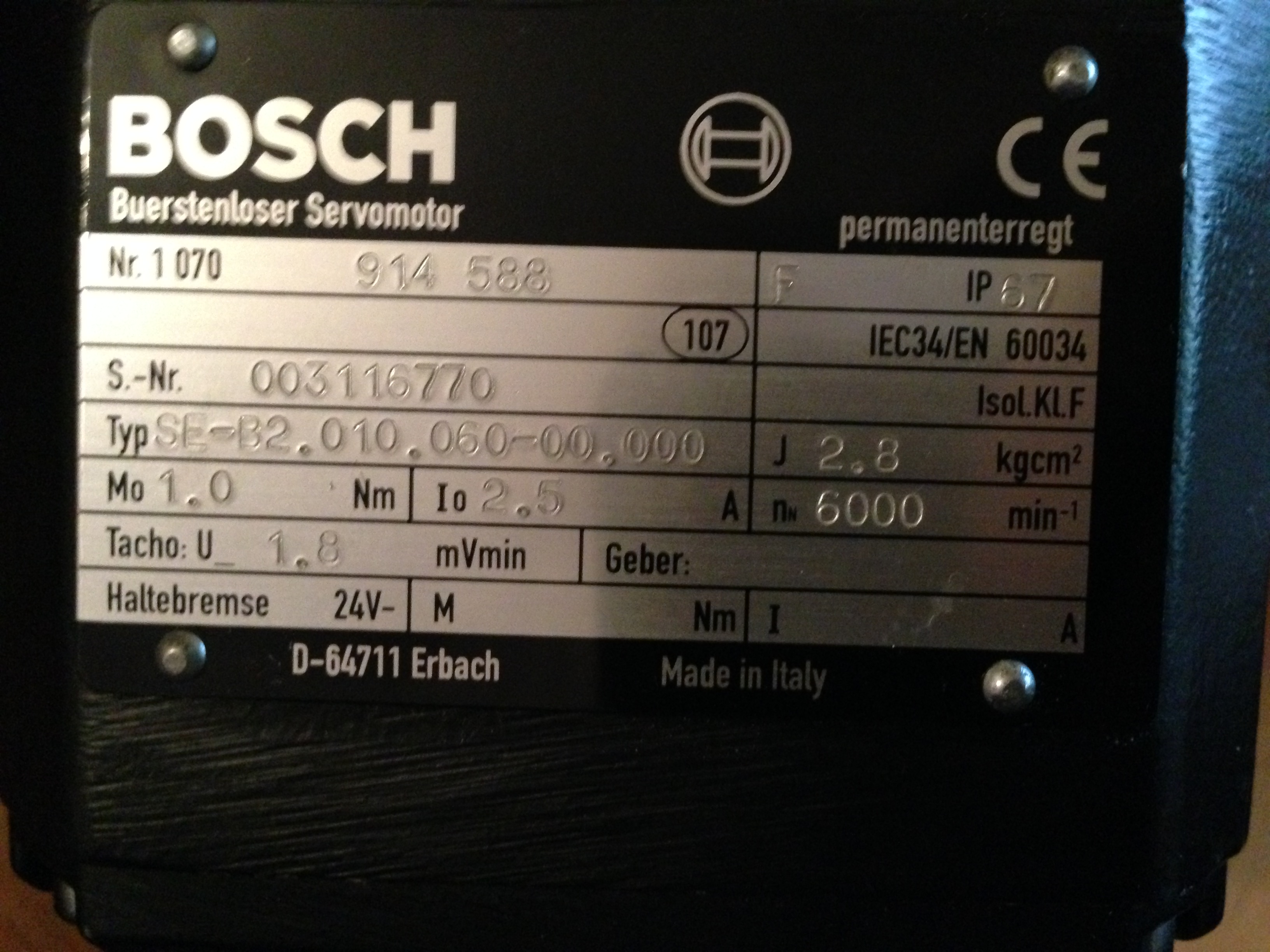 Návod máš třeba na http://www.nuovaelva.it/files/docs/Bosh ... 607401.pdf. Má to tacho. Nemá brzdu. Nicméně enkodér by ti byl stejně víceméně k ničemu, neb to většinou má absolutní s EnDatem, myslím, 2.1. To sice mělo inkrementální výstup Vpp 1, nicméně převádět tyhle sin do formátu pro čtení je těžší než TTL.