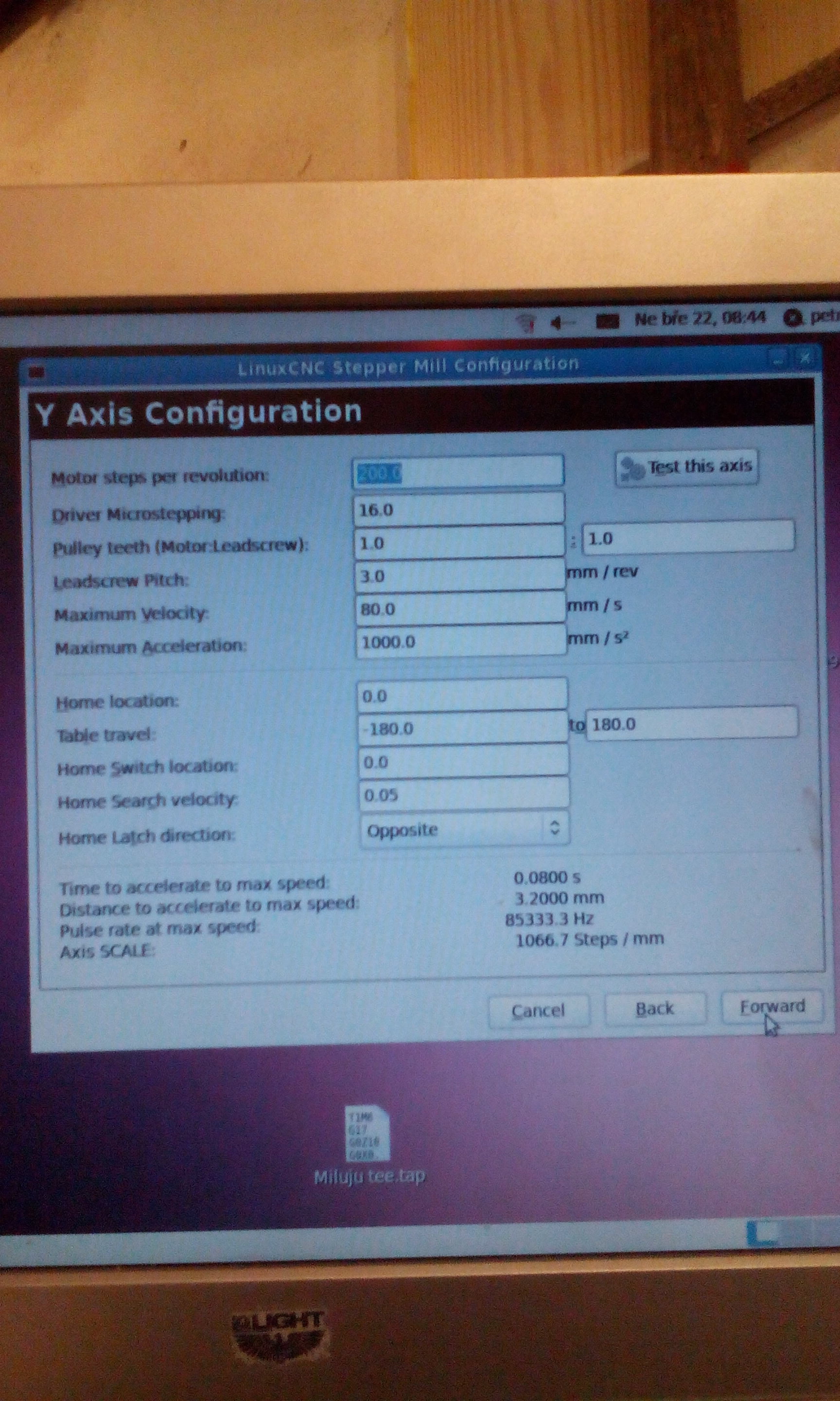 Problém byl v otázce číslo 2 - jakej zadat mikrokrok :?: , sundal jsem to na 4 a rozjelo se to :-) stejne si myslím, že konfigurace pořád není dobrá, ale tak postupně :roll: :roll: