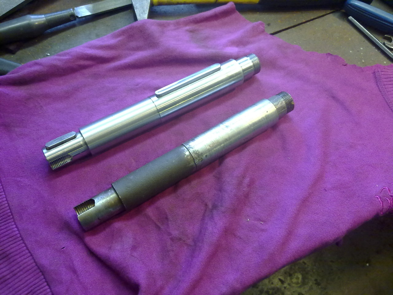 .. a vyrobil by mi to tady někdo? Ten půlzávit bych klidně nechal něčím nahradit. Podle mne to není dobrý a spolehlivý spoj, bo byl uvnitř rozlomenej na půlku. I když jsem hřídel vyndal velmi opatrně, je vidět, že má už něco zasebou.. . Raději bych chtěl vytočit nový.. . Co to může stát?